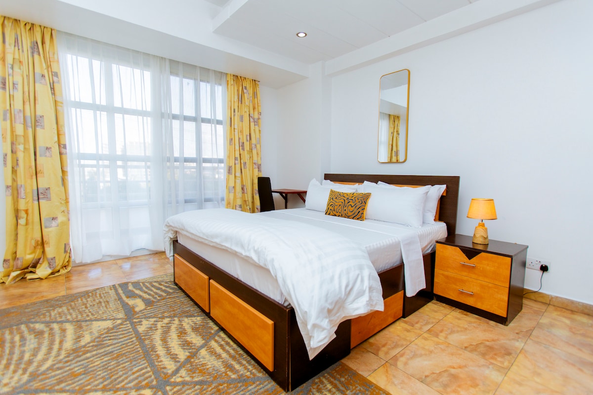 Bienvenido a esta acogedora y elegante unidad de 2 dormitorios, que consta de 2 dormitorios, 2 baños, sala de estar, 3 balcones, cocina y comedor, wifi, cocina de gas, agua caliente y agua dulce (no agua salada). Situado a solo 10-20 minutos del aeropuerto, el ferry y el mercado de Kariakoo. A solo 2 minutos a pie de la carretera principal, con fácil acceso al transporte público y a las entregas. Generador de energía de respaldo y conserje 24/7 para garantizar una estancia cómoda en un animado barrio local