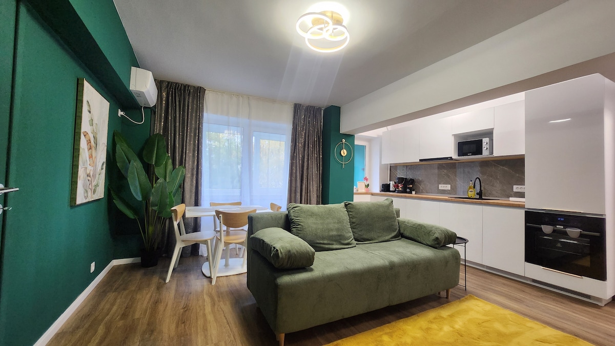 Este departamento recientemente renovado en Bucarest ofrece un refugio tranquilo con hermosas vistas al parque, a solo 10 minutos del centro de la ciudad. - El apartamento cuenta con una amplia sala de estar, - Cocina totalmente equipada. - Dos acogedoras y espaciosas habitaciones con sábanas limpias y muebles cómodos. - Servicios modernos, como wifi de alta velocidad y TV inteligente. Es ideal tanto para relajarse como para explorar la ciudad. Cerca del transporte público, cafeterías y tiendas, ¡es una base ideal para tu estadía en Bucarest!