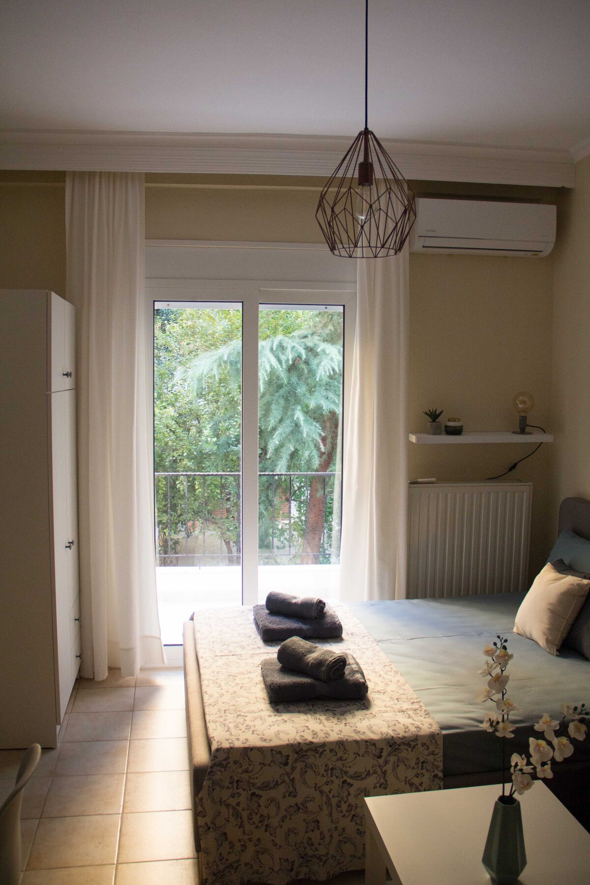 Apartamento de 70 m² con dos dormitorios en el centro de la ciudad, a 3 minutos de la calle peatonal de Venizelou, a 5 minutos de la plaza principal. Se encuentra en una ubicación privilegiada, a 10 minutos del centro comercial Kosmopolis y a 5 minutos de la parada de autobús urbano para estudiantes. Amplio, por lo que es ideal para familias y grupos. El apartamento tiene cocina equipada, cafetera, hervidor, lavadora, tendedero, plancha, secador de pelo. Se ofrece check-in las 24 horas y posibilidad de ampliar el check-out sin cargo.