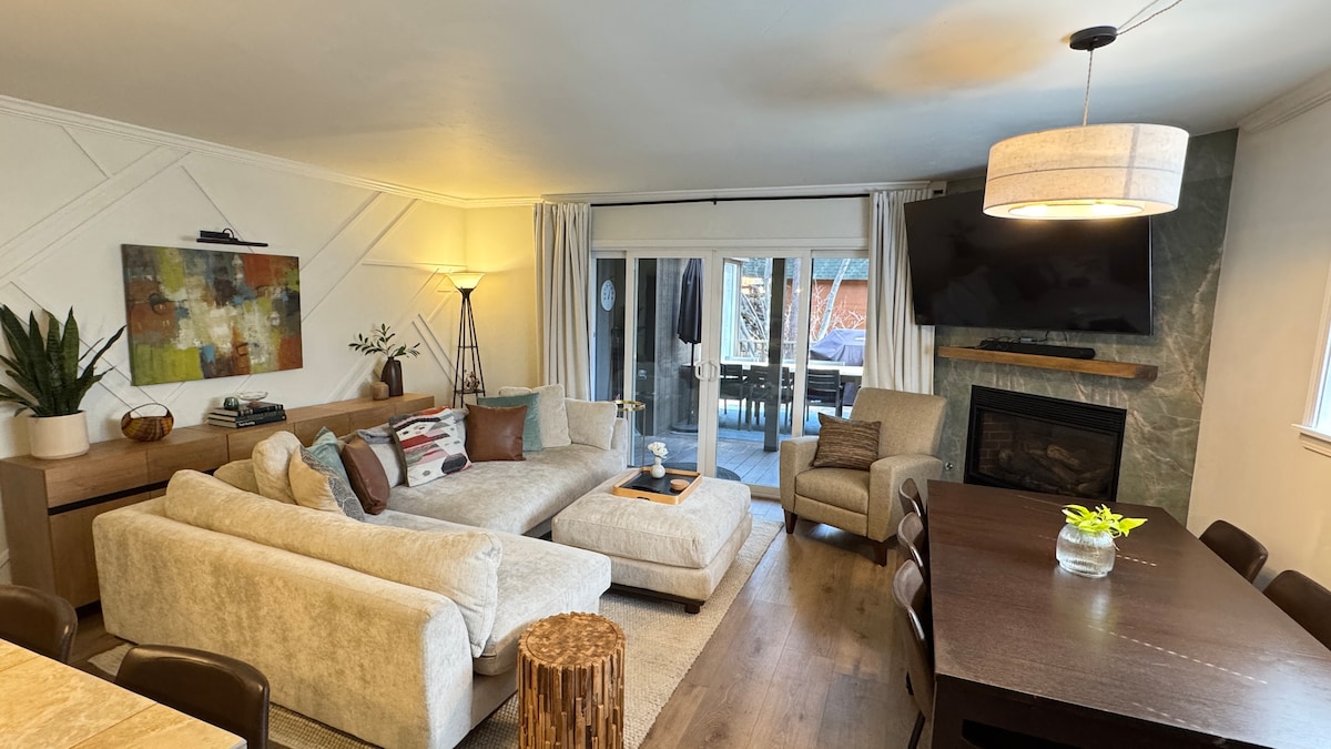 ¡Simplemente, este elegante apartamento recién remodelado rezuma sofisticación montañesa moderna! Un nivel por encima de tu apartamento ordinario en Tahoe. En verano, camina hasta el campo de golf Championship. Este apartamento de 2 dormitorios con 2 camas tamaño king y 2 baños completos arriba, de dos pisos, cuenta con actualizaciones de buen gusto en todas partes. El loft cuenta con una tumbona doble y cine en casa. Ideal para 2 parejas o personas altas con sus 2 camas tamaño king. Permiso STR: WSTR21-0337 Tax Lisc: W-4729 Ocupación máxima 4, 2 dormitorios, 2 camas, 1 espacio de aparcamiento, no se permite el aparcamiento fuera del sitio/en la calle.
