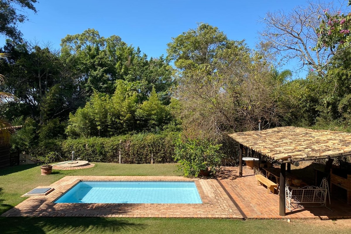 ¡Relájate y disfruta de momentos inolvidables con tu familia y amigos! Alójate en una encantadora casa de campo en el condominio Vale das Laranjeiras en Indaiatuba, a solo 10 minutos del centro de la ciudad. Aprovechar el clima agradable para disfrutar de la piscina y preparar una deliciosa barbacoa. Disfruta de total privacidad, seguridad y tranquilidad, rodeado de naturaleza, sin dejar de tener la comodidad de excelentes restaurantes y bares a pocos minutos.