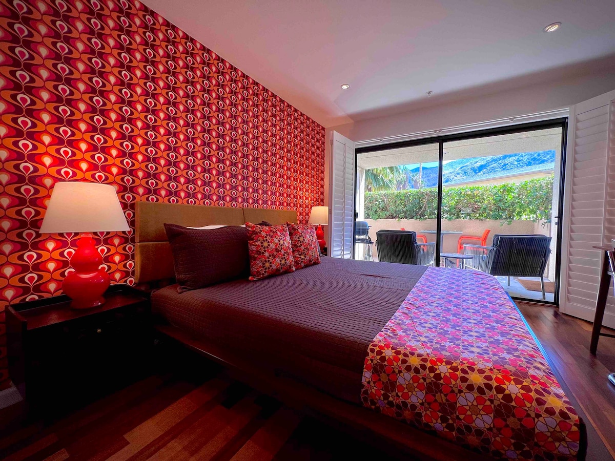 Ubicada en el centro de Palm Springs, esta adorable casa de huéspedes privada de mediados de siglo fue construida en el 71 y renovada para que coincida con nuestra casa de los 60. Configurada como una habitación de hotel (270 pies cuadrados) con entrada privada, patio, pequeño pozo de fuego, sala de estar y ducha privada al aire libre. Hay una pequeña cocina americana (no se puede cocinar). Ideal para solteros y parejas. Solo adultos. Incluye acceso al patio principal, piscina compartida y un nuevo spa. Propiedad/operado por LGBTQ. ¡El barrio tiene una notable colección de casas de mediados de siglo!