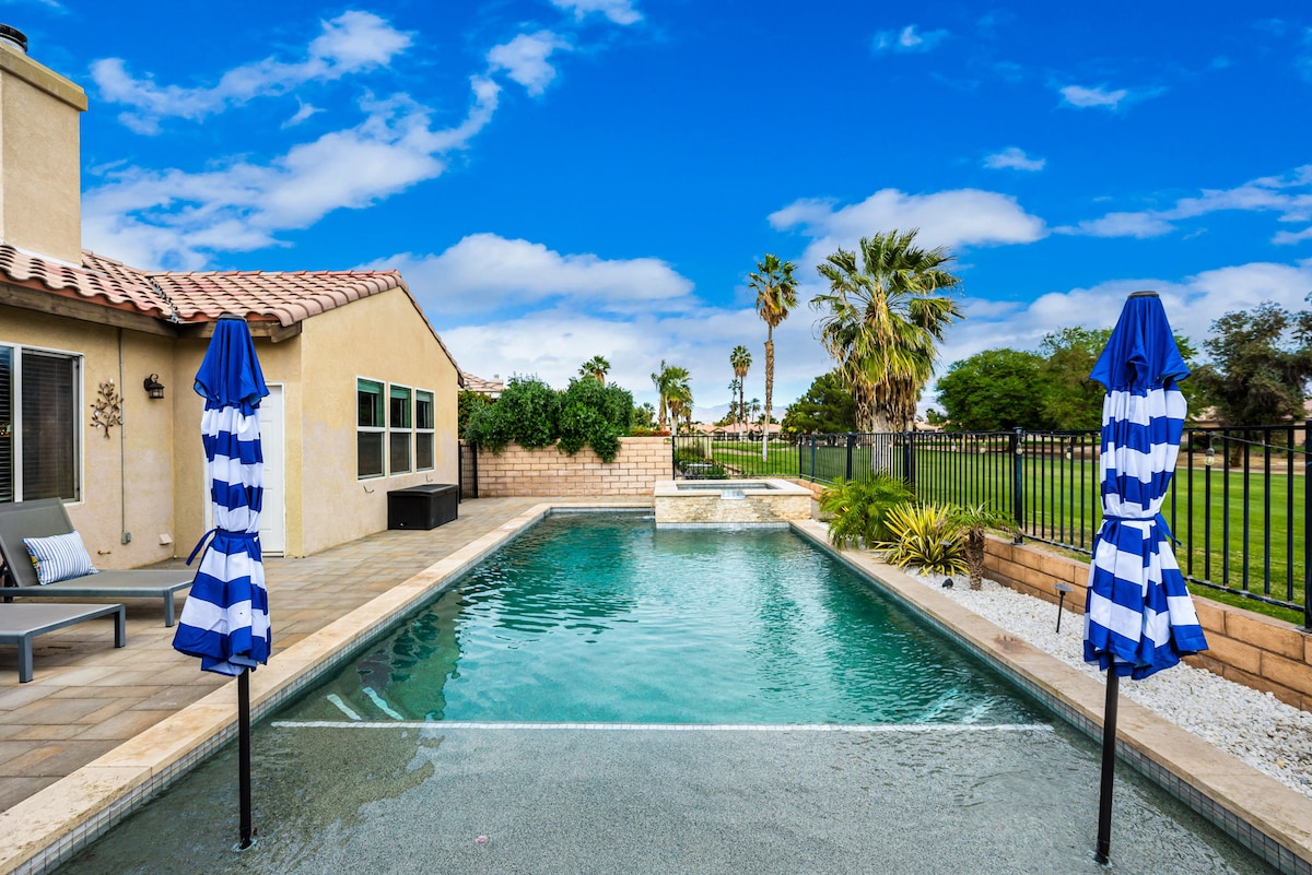 EDEN ROC: A pie de Coachella-Piscina, chimenea, barbacoa, putting green, aparcamiento, capacidad para 11 personas - ¡Escapada de lujo! Cuando vengas a Indio por trabajo, visites a tu familia o simplemente explores todo lo que ofrece la zona, puedes confiar en que Sure Home Stays te proporcionará todas las comodidades del hogar más los pequeños extras que seguramente apreciarás. ★ Disfruta del espacio, piscina privada, zona de bronceado, putting green, barbacoa, chimenea. Museos de★ arte y buena comida. ★ Coachella y Stagecoach. ★ Asistencia por mensaje de texto, correo electrónico o teléfono. ★ Café, toallas limpias.