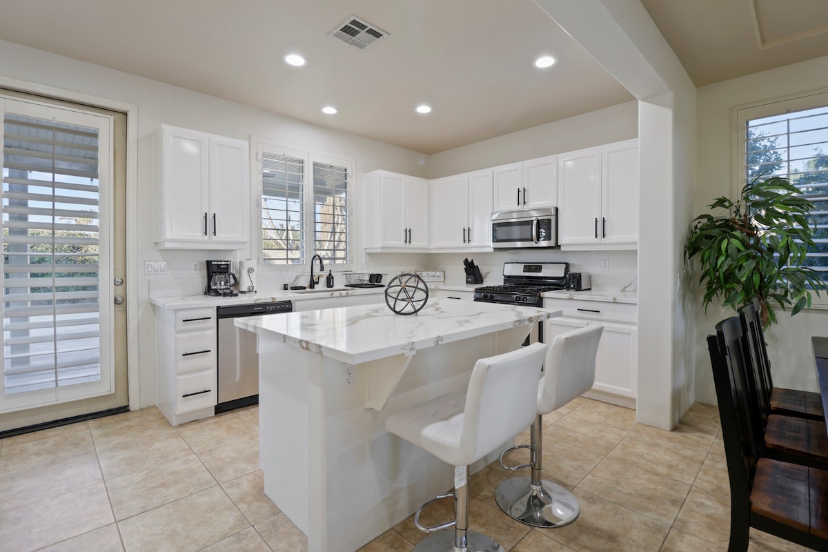 Villa de lujo en la planta baja junto al hotel Embassy Suites. A poca distancia a pie de restaurantes, salones y servicios, actividades para familias, tiendas, vida nocturna y a pocos minutos del Festival de Música de Coachella, Stagecoach, Indian Wells Tennis Gardens y el campo de golf del centro vacacional. Te va a encantar mi alojamiento por el espacio al aire libre, el barrio, la cómoda cama y la cocina. Mi casa es ideal para parejas, aventureros solitarios, viajeros de negocios y familias (con hijos).