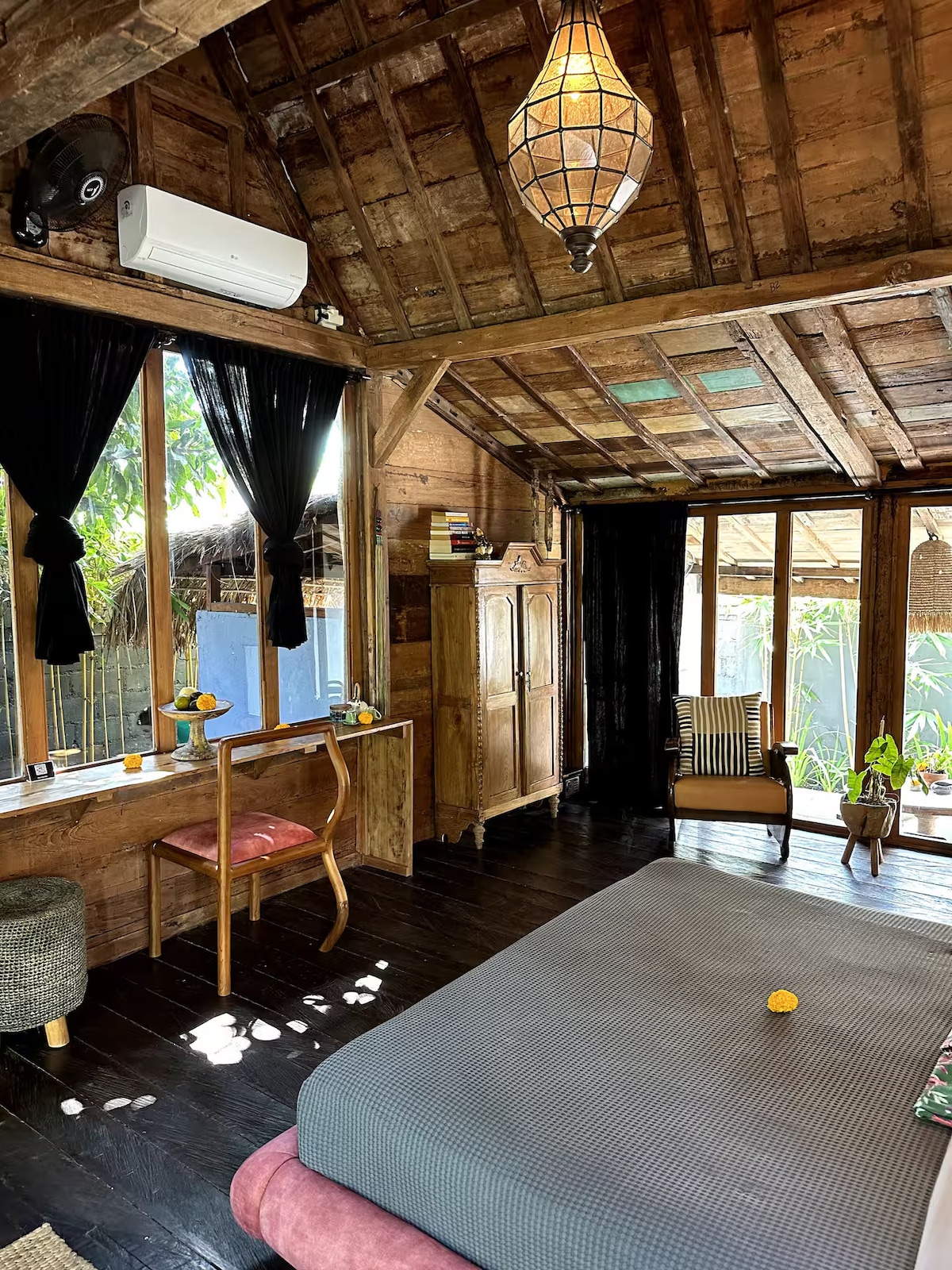 Te damos la bienvenida a Kabinji Experimenta tu vida en el corazón del alma cultural de Bali. Kabinji es tu propia cabaña estudio privada con marco 'G' escondida cerca de templos históricos, pintorescos senderos de arroz y las estimulantes aguas termales del monte Batur. ¿Nómada digital? Kabinji es perfecto para trabajar en la naturaleza con wifi rápido. A 30 minutos en auto de Ubud. Kabinji solo es apto para adultos Desayuno incluido Alójate 7 noches o más en octubre y recibe un 50 % de descuento en el alquiler de motos (sujeto a condiciones y términos)