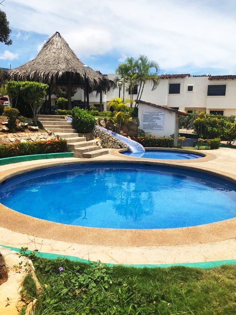 Cómodo TownHouse vacacional, ideal para que puedas relajarte y disfrutar con tu familia, Consta de 2 Habitaciones, 1.5 Baños, Piscinas para adultos y niños, área para parrilla ducha y baños, Tanque de Agua, Cocina completa, Cafetera, Nevera con freezer, Aire Acondicionado, 1 puesto de estacionamiento, Seguridad 24 horas - Portón Eléctrico. Capacidad Max 4 personas