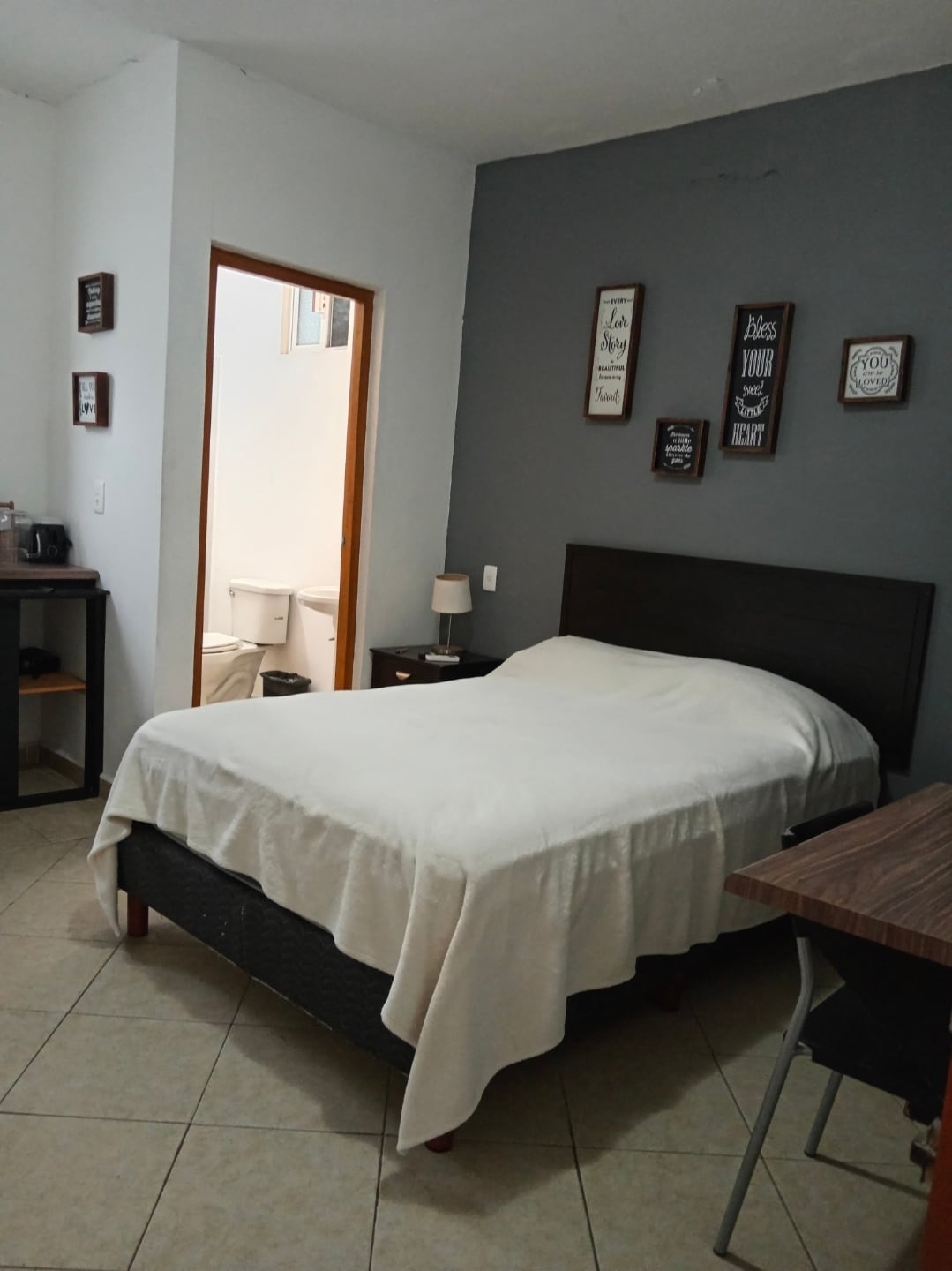 Escápate al Quetzal Loft, un espacio moderno y exclusivo dentro de un condominio privado con seguridad 24/7. Diseñado para quienes buscan privacidad, confort y un toque de naturaleza, este loft ofrece una experiencia única en la ciudad. ✨ Características destacadas: • Entrada independiente para total privacidad. • Cocina equipada solo para ti. • Baño tipo spa con doble lavabo y doble ducha. • Terraza al aire libre rodeada de árboles, ideal para relajarte o disfrutar de una comida al aire libre.