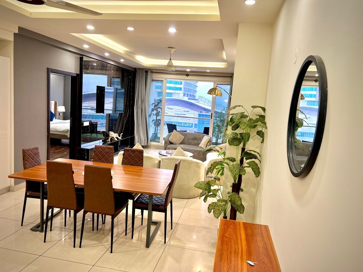 Entra en los apartamentos de 3 dormitorios de Flamingo Grand, los apartamentos con servicio más sofisticados y estéticamente emocionantes de Islamabad. Disfrute de una experiencia segura y con estilo en este lugar céntrico. Tanto si visitas Islamabad por placer como por trabajo, en Flamingo te aseguramos una experiencia de 5 estrellas. Los huéspedes también disfrutan de una plaza de aparcamiento gratuita y segura, wifi gratuito y la experiencia de ver sus series de televisión favoritas en el led inteligente de 65 pulgadas.