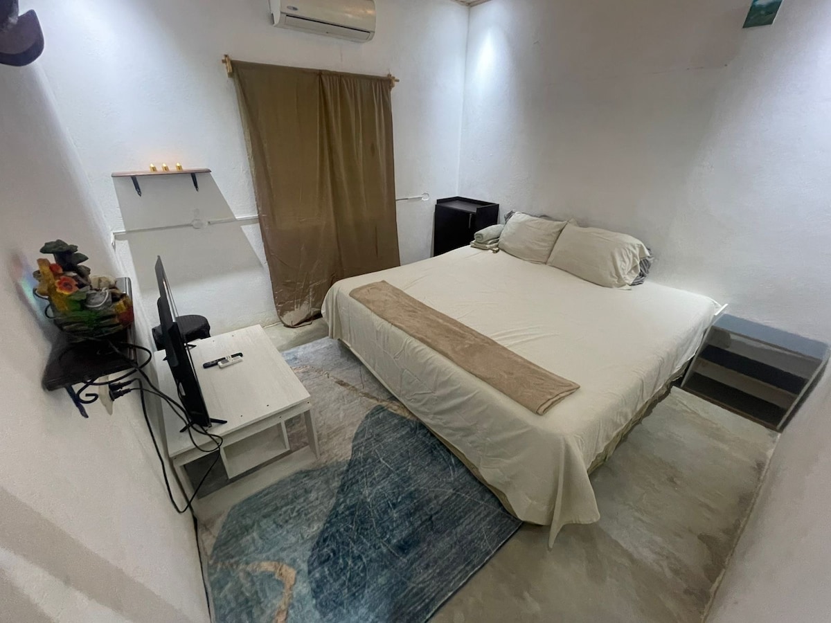 Lugar perfecto para alojarse por trabajo o vacaciones, ¡tal vez un poco de ambos! Esta equipado con cama matrimonial, TV, WiFi, Aire Acondicionado, cocina, etc.
