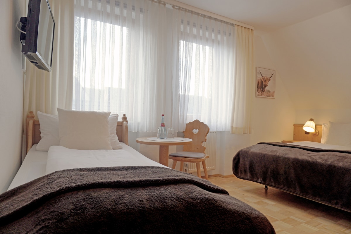 Unsere Hotelzimmer sind auf dem aller neuestem Stand. Viele Zimmer wurden vor kurzer Zeit renoviert und stehen Ihnen nun zur Verfügung, um den Urlaub oder auch die Geschäftsreise zu genießen. Fühlen Sie sich wie Zuhause! Unser Restaurant bietet schwäbische Küche. Die Öffnungszeiten sind Montag, Donnerstag, Freitag und Sonntag ab 18.00 Uhr, sonntags zusätzlich mittags von 11 - 15 Uhr, Dienstag und Mittwoch sind unsere Ruhetage.