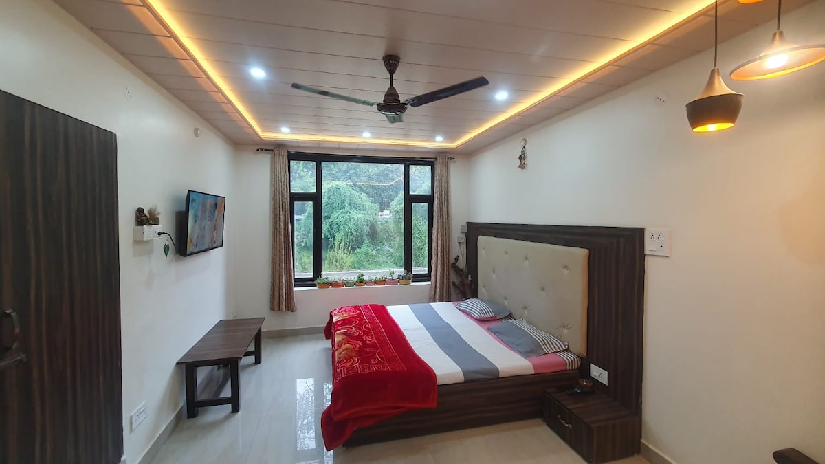 Una amplia habitación privada con baño moderno adjunto. Permitimos hasta 2 adultos en una habitación. Estás rodeado de campos verdes, bosques y montañas. Despierta con la charla de los pájaros y contempla las montañas Dhauladhar cubiertas de nieve. Estamos en 1850 m, donde el aire es tan fresco que te olvidarás de toda la contaminación de la ciudad. Nuestra agua viene directamente de los glaciares de la montaña. Puedes ir a caminar, senderismo, observación de aves, natación del río, paseo por el bosque, observación de estrellas, etc. Esta es tu casa dentro de la naturaleza.