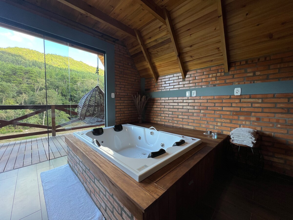 Imagine un lugar reservado y privado en medio de la naturaleza, en la cima de una colina, rodeado de pastos, hortensias, bañado por arroyos, un cielo increíble y una cascada de agua cristalina. Nos esforzamos por brindar una experiencia cálida, cómoda y romántica con el clima de la montaña, la paz y la comodidad. El chalé está equipado con bañera de hidromasaje, barbacoa interior, estufa de leña y zona exterior en la terraza para fogatas. Proporcionamos la leña. Siente la libertad en el equilibrio del infinito junto al Chalé.