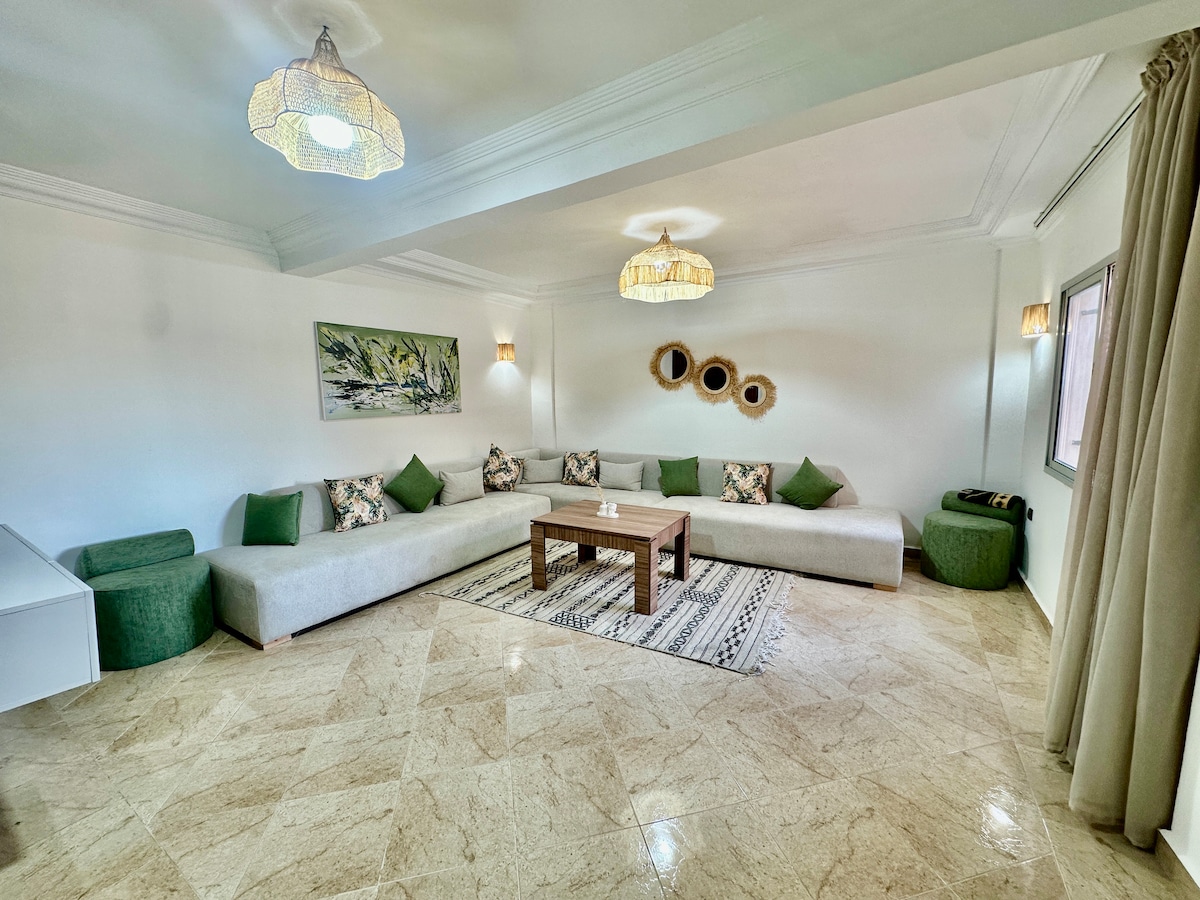 Descubre la mezcla perfecta de comodidad moderna y auténtico encanto marroquí en nuestro elegante apartamento, situado en la tranquila residencia Nour Prestige, a pocos minutos de la vibrante medina de Marrakech. Ideal para parejas, familias o trabajadores remotos que buscan una estancia relajante con fácil acceso a la ciudad. ¿⚽ Vas a la Copa de África 2025? Estamos a solo 15 minutos en coche del estadio, ¡con un descuento semanal 🌟 especial 🌟 para nuestros huéspedes!