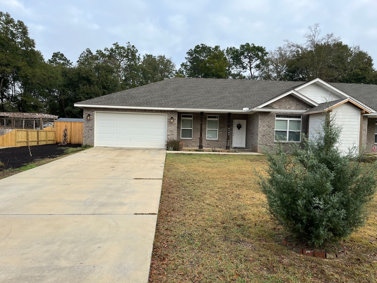 ¡Lee la descripción completa antes de reservar! A 25-30 minutos de la playa dependiendo del tráfico. ¡Trae tu barco y atraca en tu patio trasero! Siéntate en el porche y disfruta del café por la mañana escuchando a las aves y ranas cercanas. El alojamiento se encuentra en la tranquila comunidad de Escambia Shores. Rodeada de altos pinos, esta relajante casa es perfecta para unas vacaciones familiares o una luna de miel. ¡Excelente pesca en el canal o en el muelle! ¡O haz kayak en la bahía para pescar!