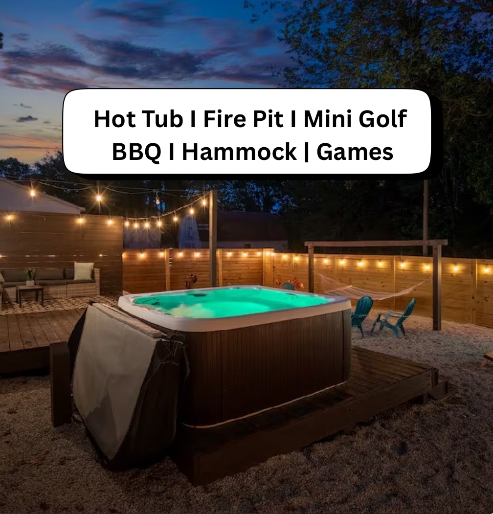 ¡Oasis en el patio trasero recientemente renovado! Disfruta de un patio totalmente vallado con una nueva bañera de hidromasaje, minigolf, una terraza personalizada con pared de privacidad, chimenea, hamaca, cornhole, Connect 4 de tamaño natural y Jenga gigante, perfecto para una escapada inolvidable a Raleigh con familiares o amigos. A solo 5 minutos del centro de la ciudad, Red Hat Amphitheater, Walnut Creek y Duke Energy Center, y a 10 minutos de NC State. ¡Diversión, comodidad y comodidad, todo en uno!