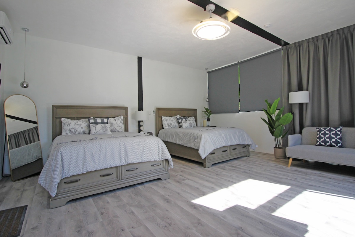 Hermosa y Limpia Habitación para Dos Personas, rodeada de Jardines en un Entorno totalmente apacible, pero al mismo tiempo cerca de la emoción del Rollo. ya que la casa se encuentra a unos 50 metros de distancia del Parque. La habitación cuenta con 1 Cama matrimonial, un sofá cama,baño privado, TV Cable, A/A Minisplit, wifi. Tiene entrada independiente.
