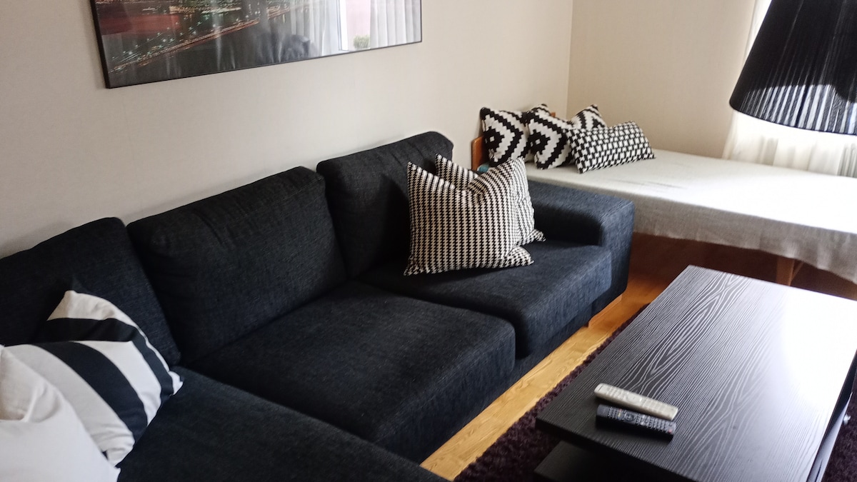 Acogedor y fresco apartamento justo en el centro de Jokkmokk. A 100 metros de la estación de autobuses, la tienda de comestibles, el círculo K, los restaurantes, las tiendas, etc. A poca distancia a pie del museo, el jardín de montaña, la pista de luz eléctrica, el área de natación (hora de verano), la pista de esquí (hora de invierno). Estacionamiento en el patio con cochera y calentador de motor. El departamento tiene dos habitaciones, cocina y WC con ducha. En el dormitorio hay una cama doble y en la sala de estar existe la posibilidad de camas adicionales por una tarifa de 500 SEK/cama y noche. Posibilidad de utilizar lavandería.