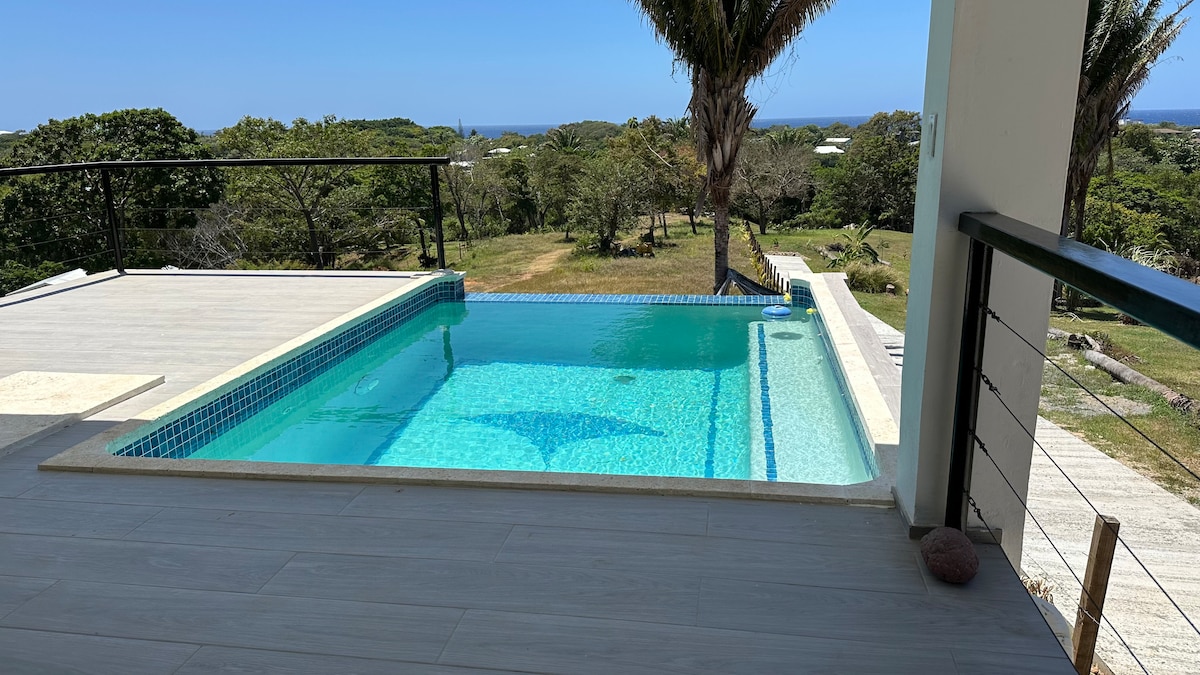 Relax with the whole family at this peaceful place to stay. Paradise for adults and children alike. Safe, quiet gated community with gorgeous infinity pool minutes walk away, or seconds drive;) Ocean view, located up in the beautiful prestigious Diamond Hill Resort. Comfortably sleeps 5, with 3 queen size beds and fold out sofa bed. For your convenience, wifi, AC, washer, dryer and flat grill included.