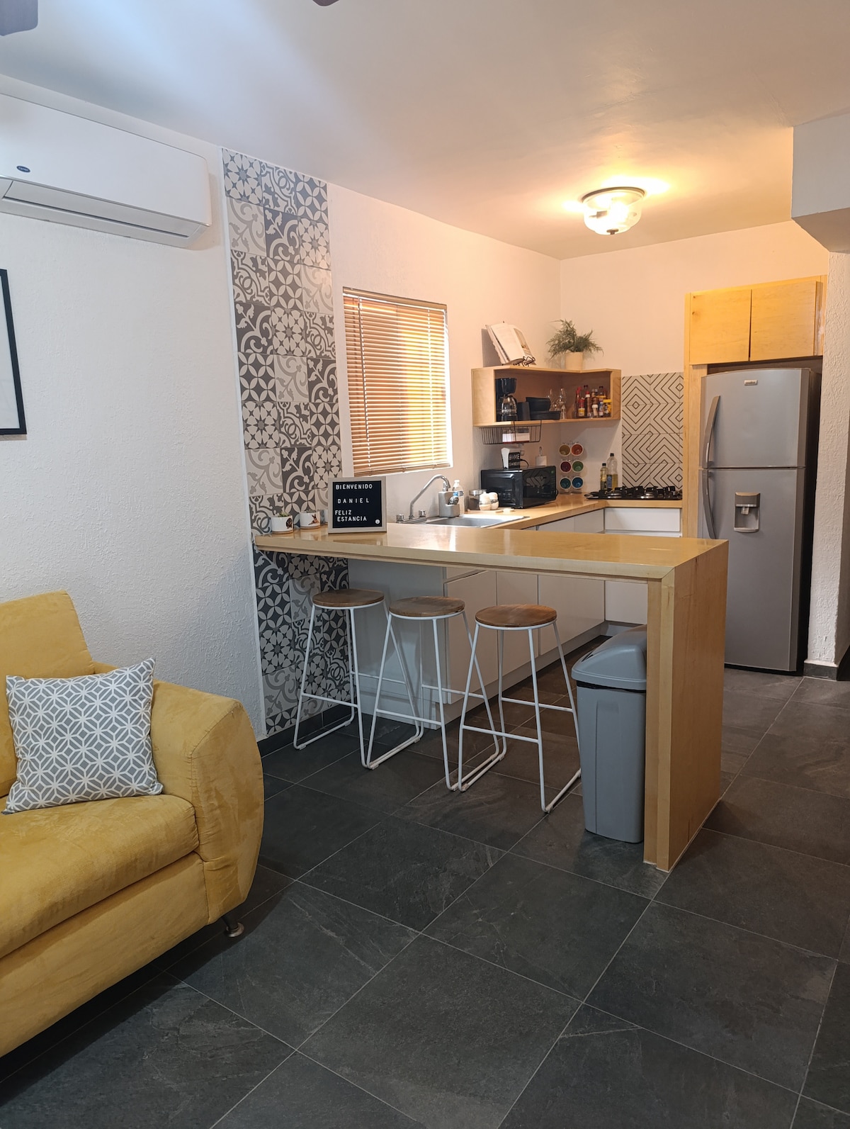 Edificio nuevo, todo el condominio con total privacidad, el condominio cuenta con 2 cuartos (camas queen) y un sofa cama, internet y cable TotalPlay, cocina totalmente equipada; refri, micro, licuadora, cafetera y tostador. Clima: refrigeracion y calefaccion. guardias de seguridad 24/7, camaras, y acceso con codigo a la reja. -Nuevo Edificio, Lofts con Urbanismo Moderno/Arquitectura. - Sistema de refrigeración - 24/7 guardias de seguridad - Área vigilada - Wi-fi - 2 habitaciones + sofá cama - gran ubicación