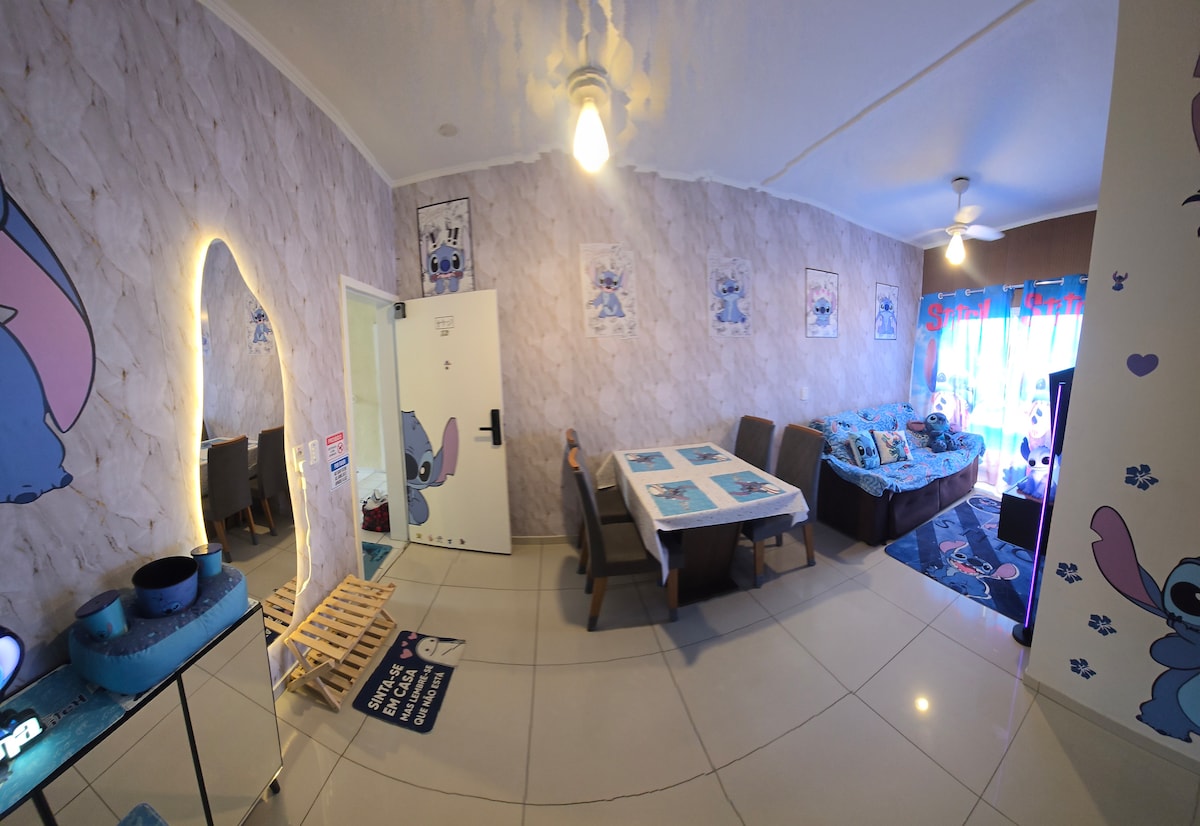 Sua aventura no Hopi Hari e Wet 'n Wild merece uma base incrível! 🎢 Nosso apê temático é o QG perfeito para até 9 pessoas. A diversão continua em cada cômodo: relaxe com o Stitch na sala Ohana, prepare-se para travessuras no quarto dos Minions e mergulhe em sonhos coloridos no mundo do Bob Esponja. Para os estrategistas, temos um mapa gigante dos parques no corredor para você planejar o seu dia e não perder nada! Tudo pensado para o conforto da sua galera. Garanta já a sua data!! ✨