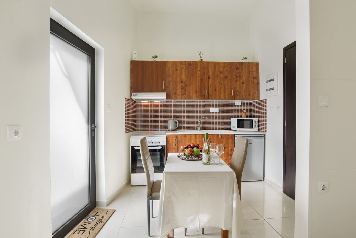 Bienvenido a nuestro moderno y acogedor apartamento en Kalyves, Creta, ubicado en la vibrante ciudad de Chania, Grecia. Ubicado a un tiro de piedra del resplandeciente mar, este encantador refugio ofrece el equilibrio perfecto entre tranquilidad y comodidad. Entra en nuestro pequeño pero elegante apartamento, meticulosamente diseñado para proporcionar comodidad y funcionalidad. El espacio de estar decorado con buen gusto cuenta con muebles contemporáneos, creando un ambiente acogedor para que te relajes y despejes.