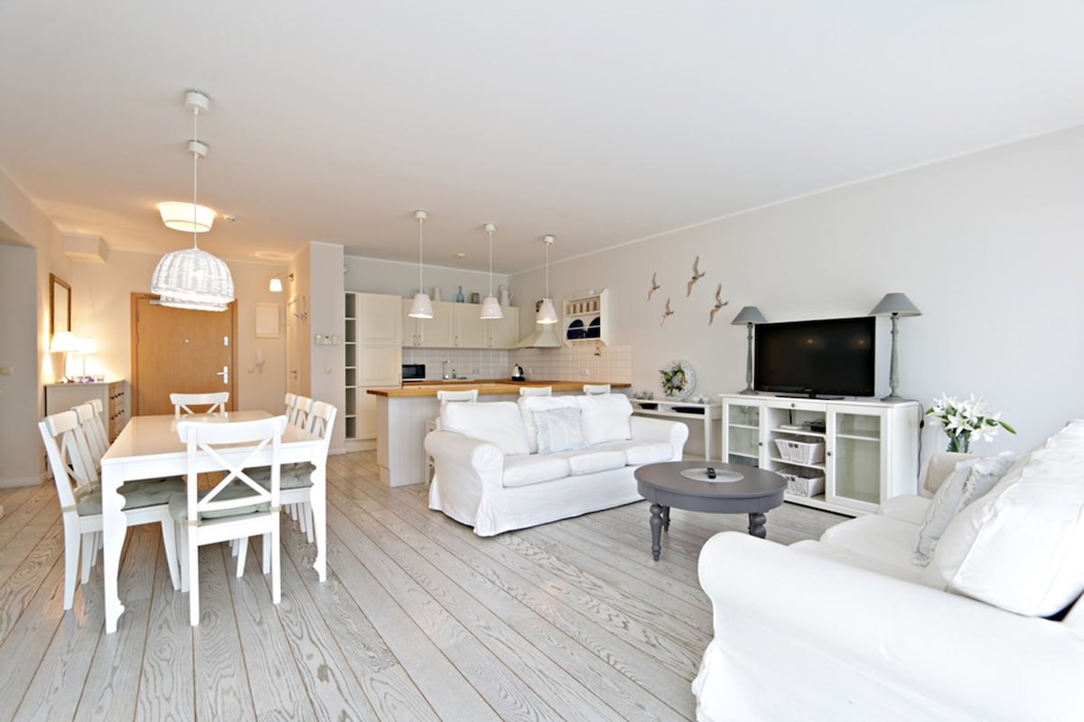 Un apartamento moderno en Sea & Forest Resort, en la frontera del Parque Nacional Wolin. Amplio, totalmente equipado, con balcón, aire acondicionado y cocina americana. Los huéspedes tienen una plaza de aparcamiento privada en un garaje subterráneo y acceso a un área de bienestar y gimnasio incluida. Hay numerosas rutas de senderismo y ciclismo en la zona, a aproximadamente 1 km de la granja de bisontes, a 30 minutos a pie del mar o de un apartamento gratuito. Perfecto para una recreación relajante y activa.