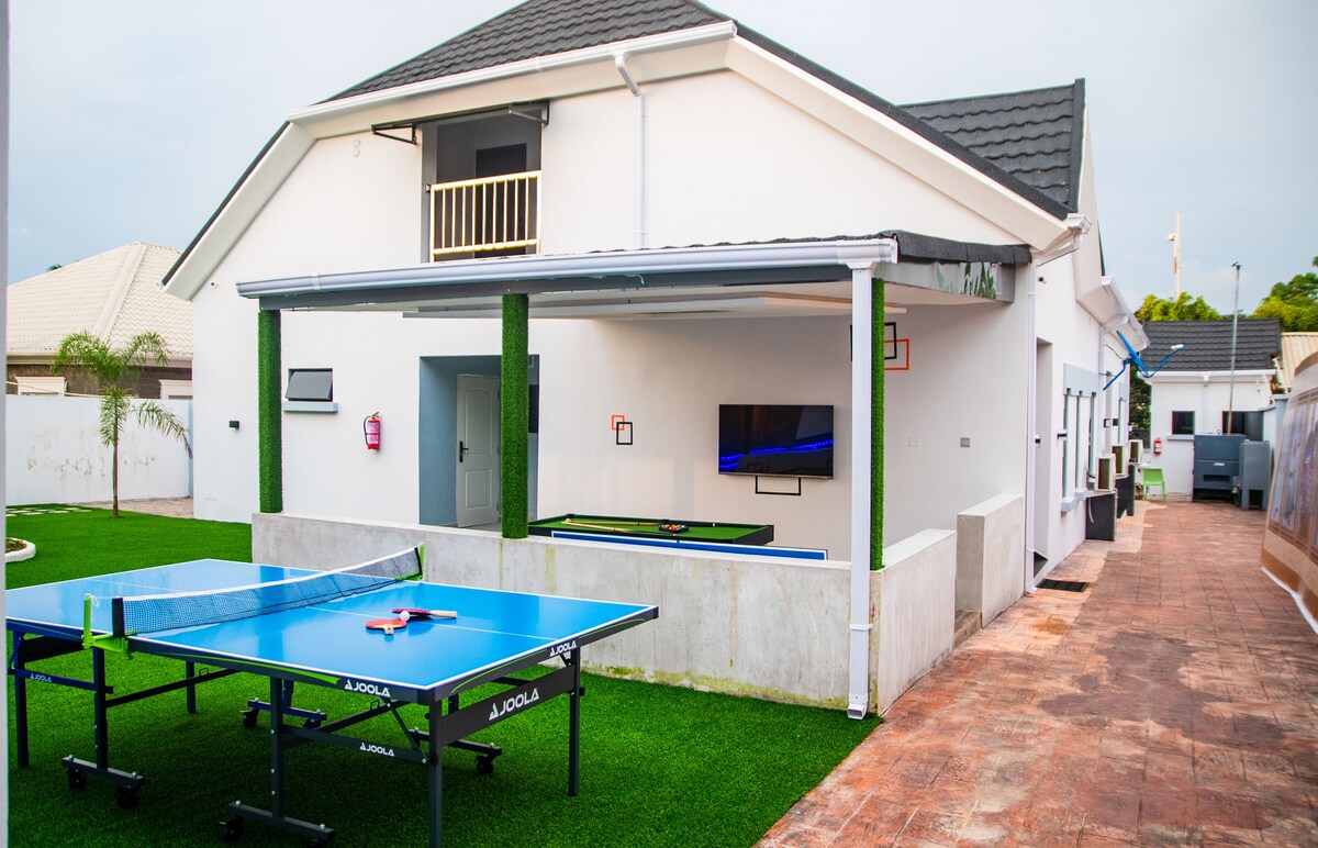 Experimenta una mezcla de clase, mobiliario intencional y espacio para tu máxima comodidad en mi apartamento estudio en el ático. La escalera que conduce al ático irradia realeza y magnificencia; con vistas a un patio de recreo repleto de tenis de mesa, billar, rincón de juegos de televisión, gimnasio y piscina. Funciona de forma sostenible con un inversor de energía solar, un generador de reserva y una fuente de alimentación relativamente estable como complemento. El apartamento cuenta con aire acondicionado, calentador de agua y una cocina de planta abierta totalmente equipada.