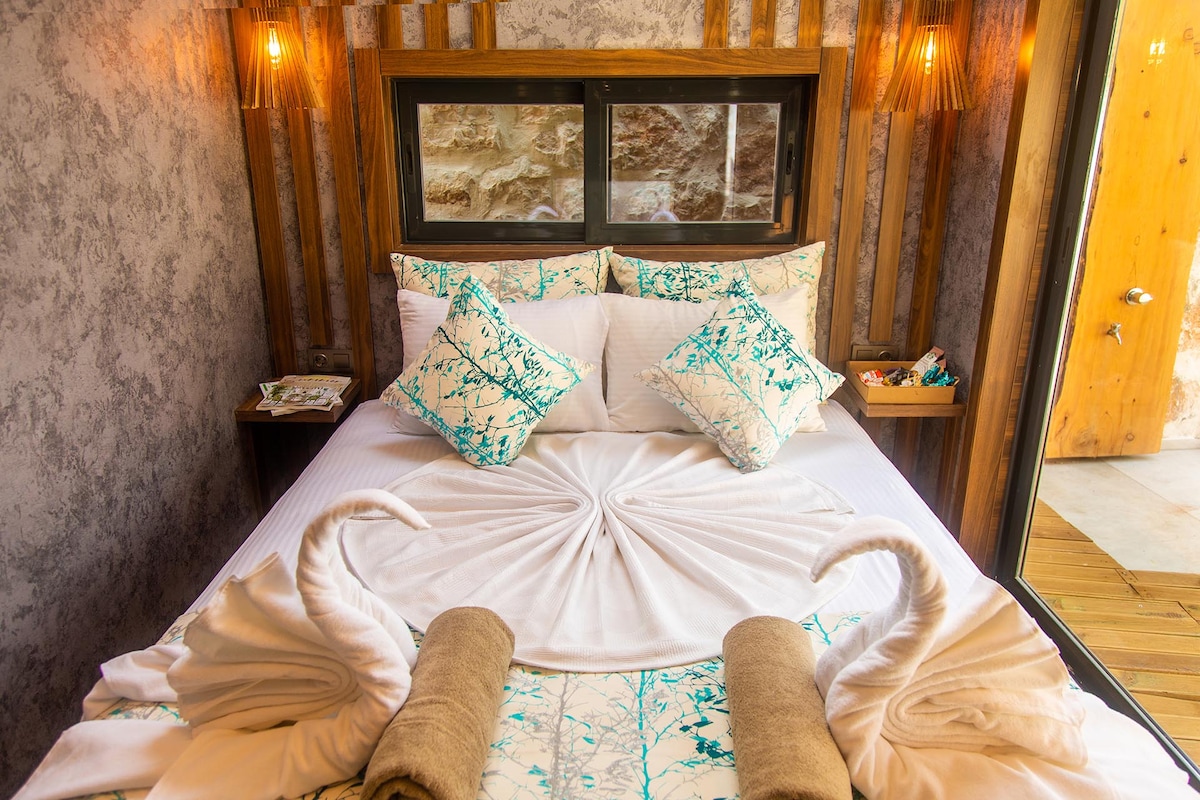 Nuestras habitaciones están completamente hechas de acacia, adecuada para la naturaleza con cedros y pinos. Está a 20 metros del mar en el puerto de Kekova Üçağız. Puedes encontrar restaurantes,cafés, tiendas de comestibles, recuerdos y servicios de excursiones en barco. Es un negocio familiar. Las habitaciones tienen ducha,inodoro, aire acondicionado, armario,mesita de noche y toallas.