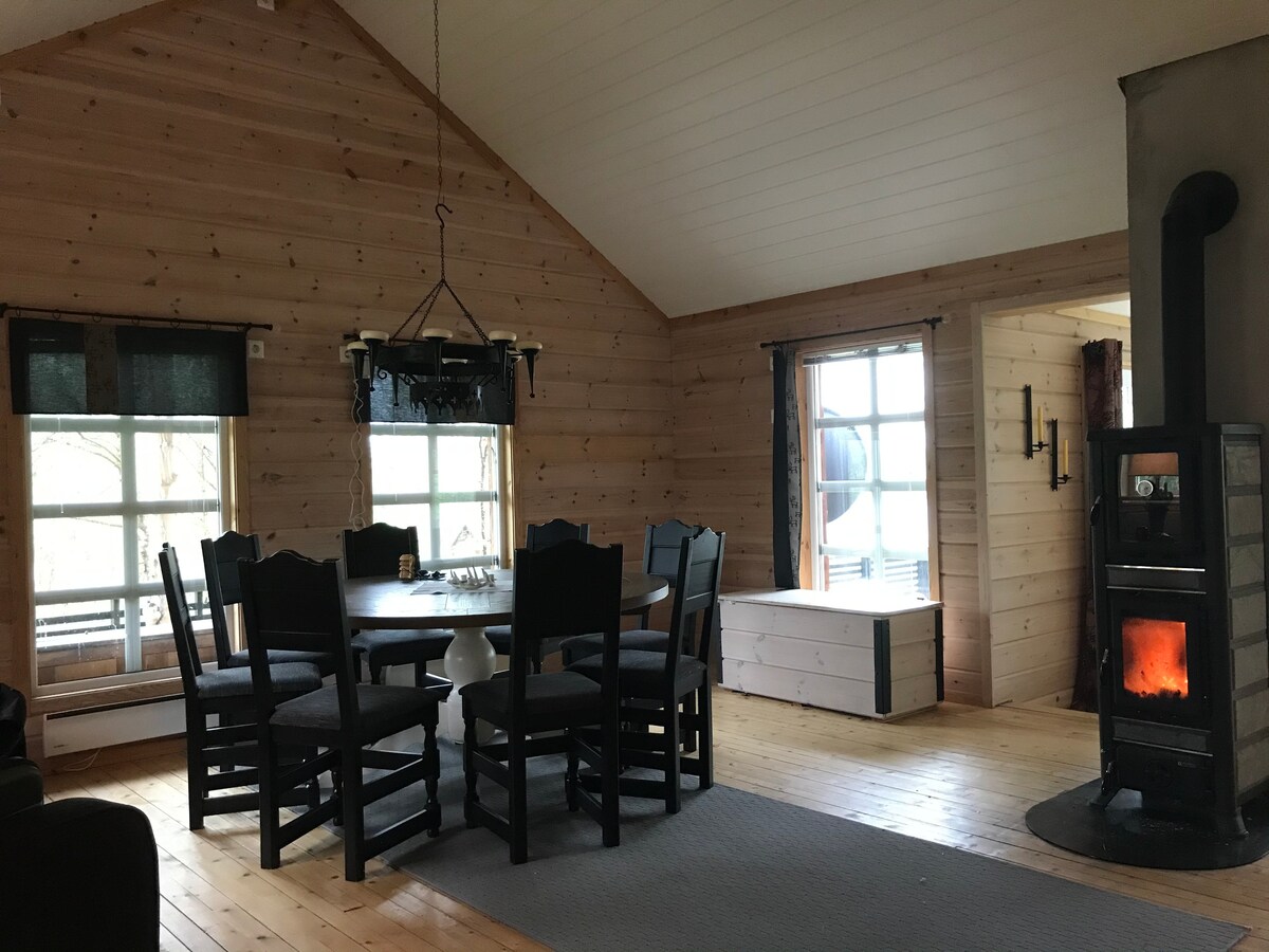 - Excelente ubicación junto al agua. -2 dormitorios con espacio para 5 personas (3 camas en una habitación, 2 en la otra) - Temas con 3 lugares adicionales para dormir (2 colchones + 1 sofá cama). - Cocina con estufa de gas y nevera de gas. - Calefacción con una estufa de leña y una estufa diésel. - Sistema solar de 12 V para luces y carga. - Unidad de gasolina para energía adicional si es necesario. - La cabaña estará cálida y lista a tu llegada. - Oportunidades de montar en libros y scooters en temporada. La cabaña no tiene agua corriente ni baño. Solo inodoro al aire libre en un edificio separado. (ver fotos)