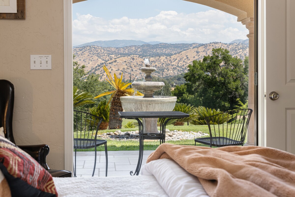 Sierra Views es una suite privada (393 pies cuadrados) ubicada en Squaw Valley, California 93675, a unos 1800 pies en las estribaciones y está decorada con la historia de Squaw Valley y los parques nacionales cercanos. La suite tiene vistas parciales al viñedo y a los robles. El patio trasero tiene vistas a 15 000 acres de tierras de rancho y al valle de California Central. El patio delantero tiene vistas a las montañas Great Western Divide. El Parque Nacional Cañón de los Reyes está a 25 millas de distancia y el Parque Nacional Sequoia está a 40 millas de distancia.