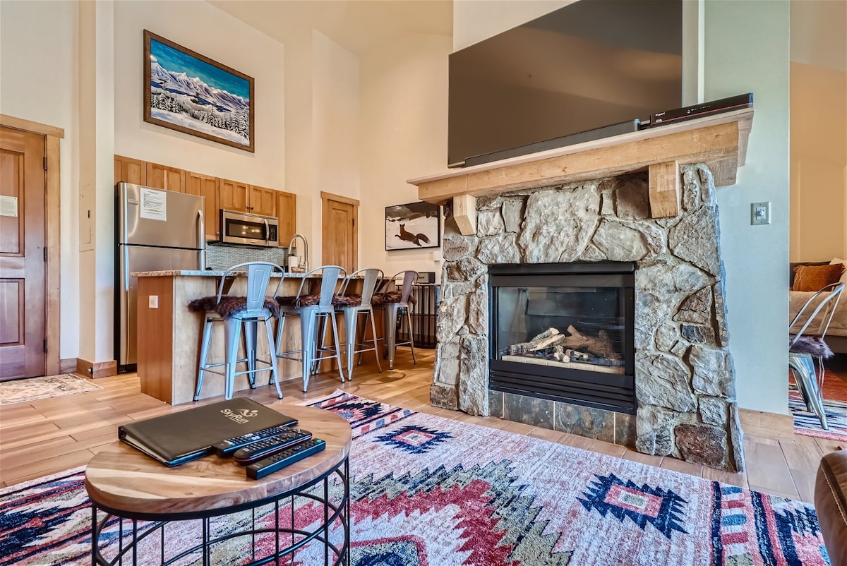 Bright Haus Villa es un apartamento de tres dormitorios y dos baños ubicado en el cuarto piso del edificio Wetterhorn en The Village of Breckenridge. Adéntrate en el lujo de nuestra unidad más grande, perfecta para alojar a varias parejas y familias. La unidad cuenta con tres balcones que ofrecen vistas panorámicas de la cordillera Ten-Mile, una chimenea, una gran sala de estar con mesa de comedor, una habitación con literas y una lavadora/secadora en la unidad.