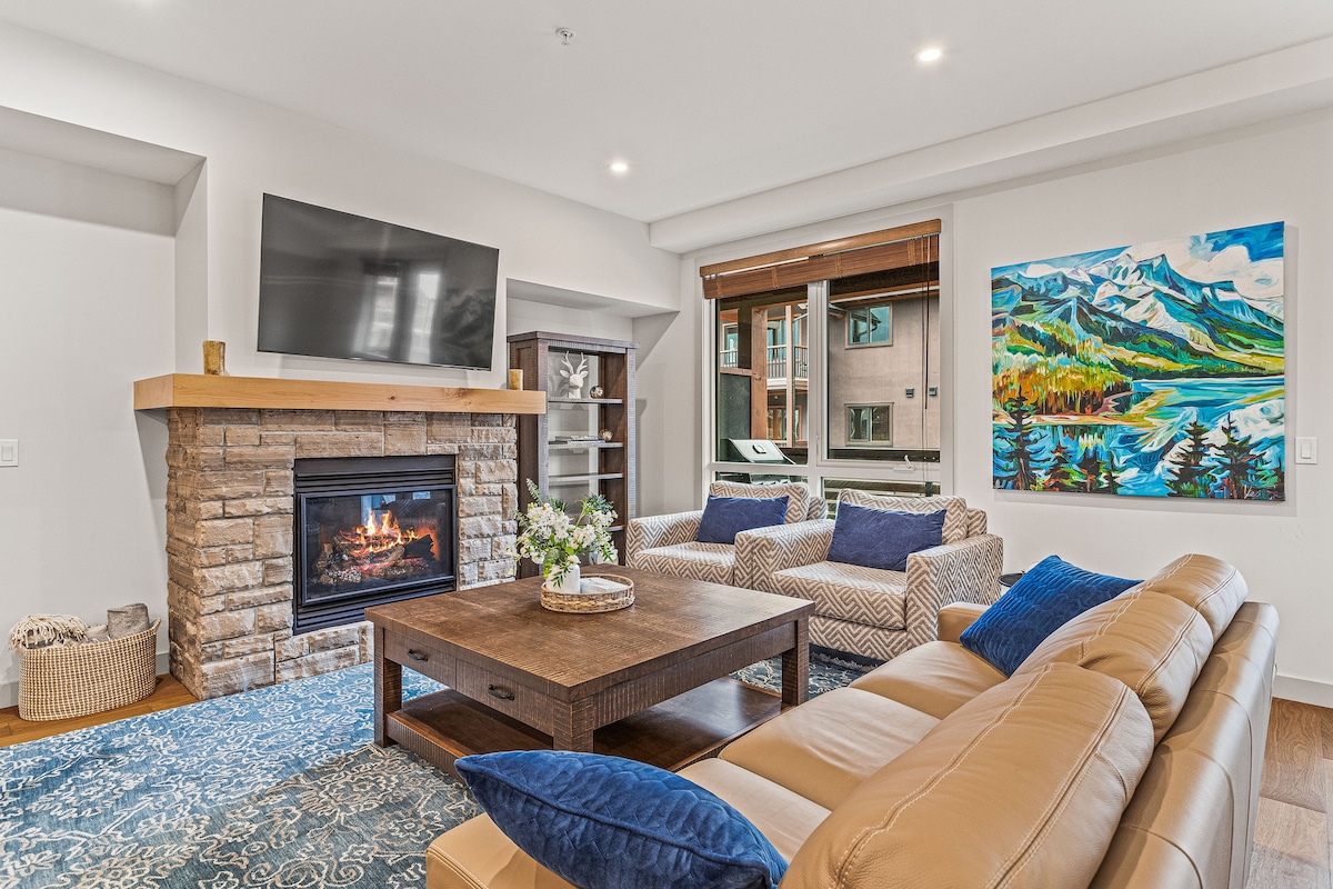 Welcome to your luxurious mountain retreat! This brand-new one-bedroom king suite accommodates up to 4 guests. Just a 10-minute walk from the town center, the suite features a king-sized bed, a pull-out sofa bed, one bathroom, a fully equipped modern kitchen, flat-screen TVs, a washer/dryer, and luxurious linens and towels. The suite includes access to a hot tub, gym, and one underground parking space. Short-term rental license: RES-09776