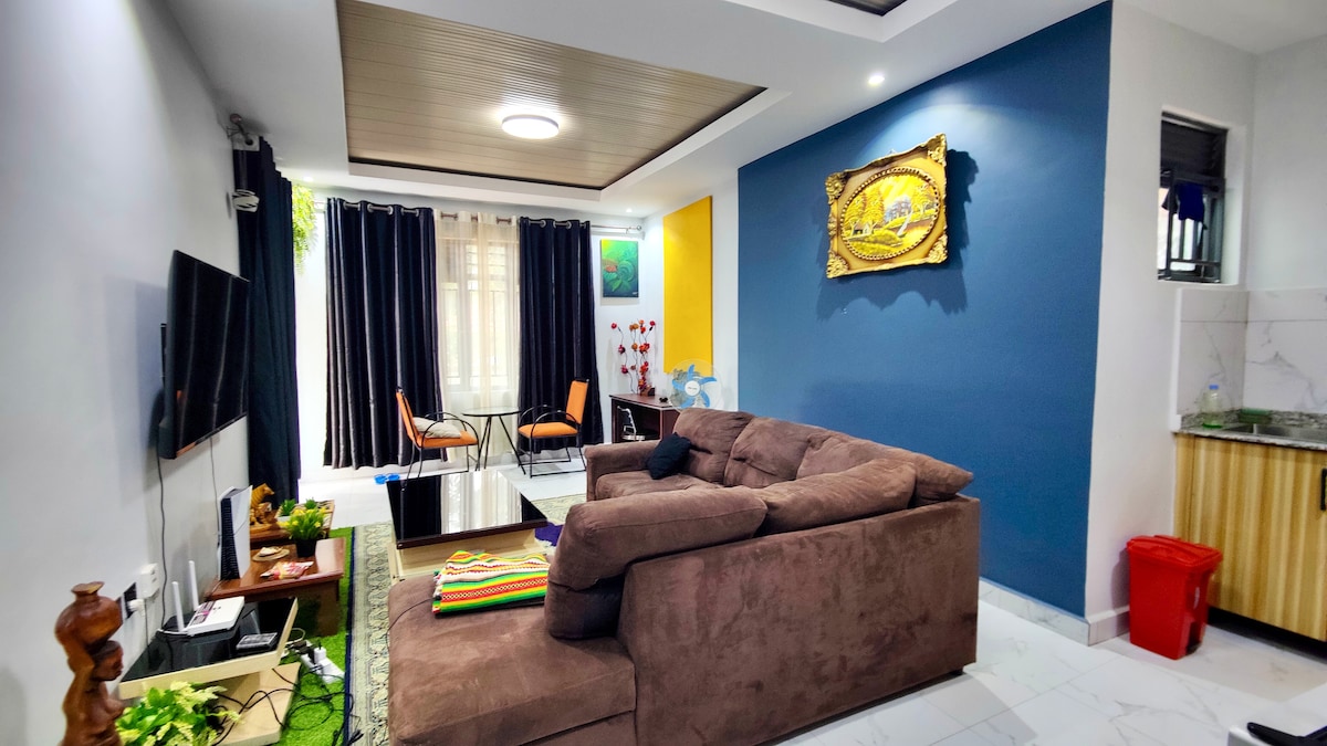 Disfruta de tu estancia en este luminoso y tranquilo apartamento de 1 dormitorio, convenientemente ubicado en una carretera asfaltada en Gikondo. Tanto si estás en Kigali por trabajo como por placer, este espacio ofrece todo lo que necesitas para una estancia cómoda y relajante. Lo que te encantará: • Habitación🛏️ cómoda con sábanas limpias y espacio de almacenamiento • Smart TV con Netflix, ideal para noches de relax • Cocina bien equipada para comidas caseras. Balcón privado, ideal para el café de la mañana o las vistas al atardecer. Wifi rápido y confiable