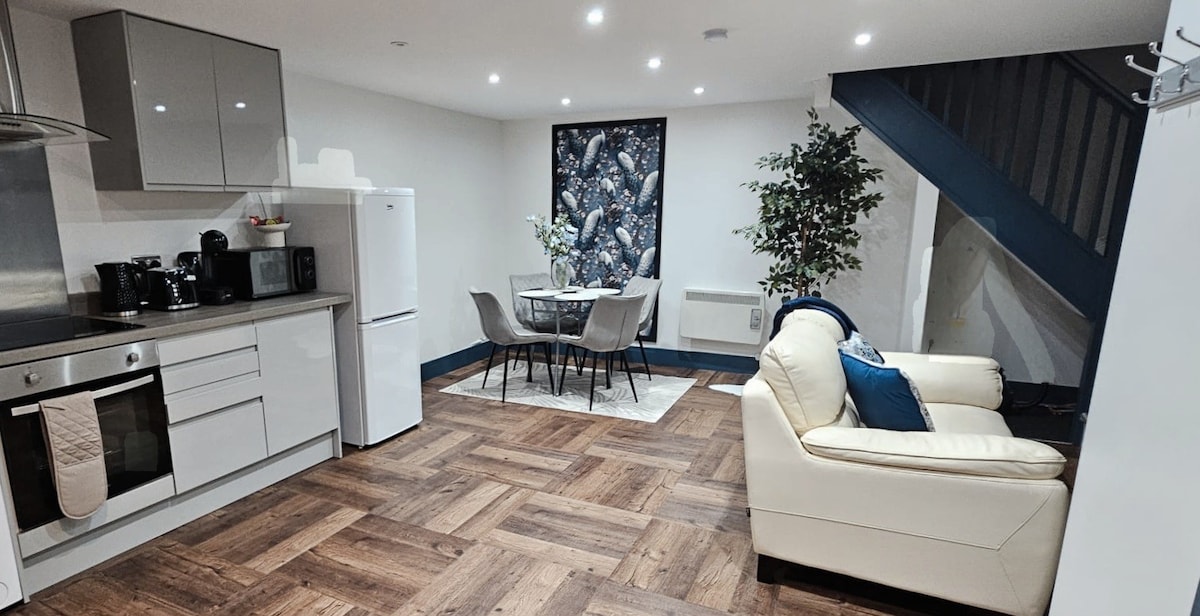 Fabulous newly renovated luxury apartment with awesome location to Hull Marina. The Fully fitted kitchen contains a fridge, freezer, dishwasher, washer dryer, electric oven, induction hob, toaster, microwave & kettle. Living area luxury sofa, Smart TV and French doors opening to a Juliet balcony. Bed 1 has a Kingsized bed, fully fitted wardrobes with chest of drawers in each, smart TV Bed 2 has 2 larger single beds, smart tv, and open wardrobe Bathroom has bath, separate shower & Vanity Unit