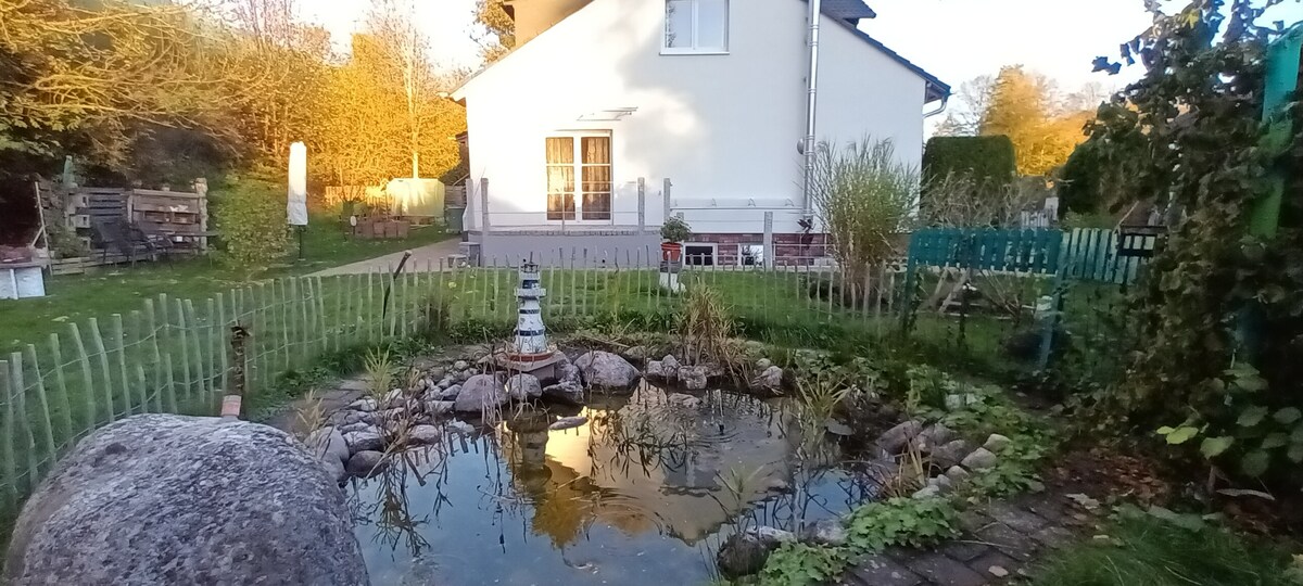 El apartamento está situado en una zona tranquila, tiene su propia entrada y es adecuado para 2 personas, posiblemente con un niño. Tiene 70 m², dispone de un gran dormitorio con una cama de 140x200 + 90x200. La sala de estar con cocina está equipada con TV, equipo de música, chimenea y mesa de comedor. La cocina está equipada con fogones, horno, microondas, nevera/congelador y abundantes utensilios de cocina. El baño tiene una ducha espaciosa, inodoro y lavadora