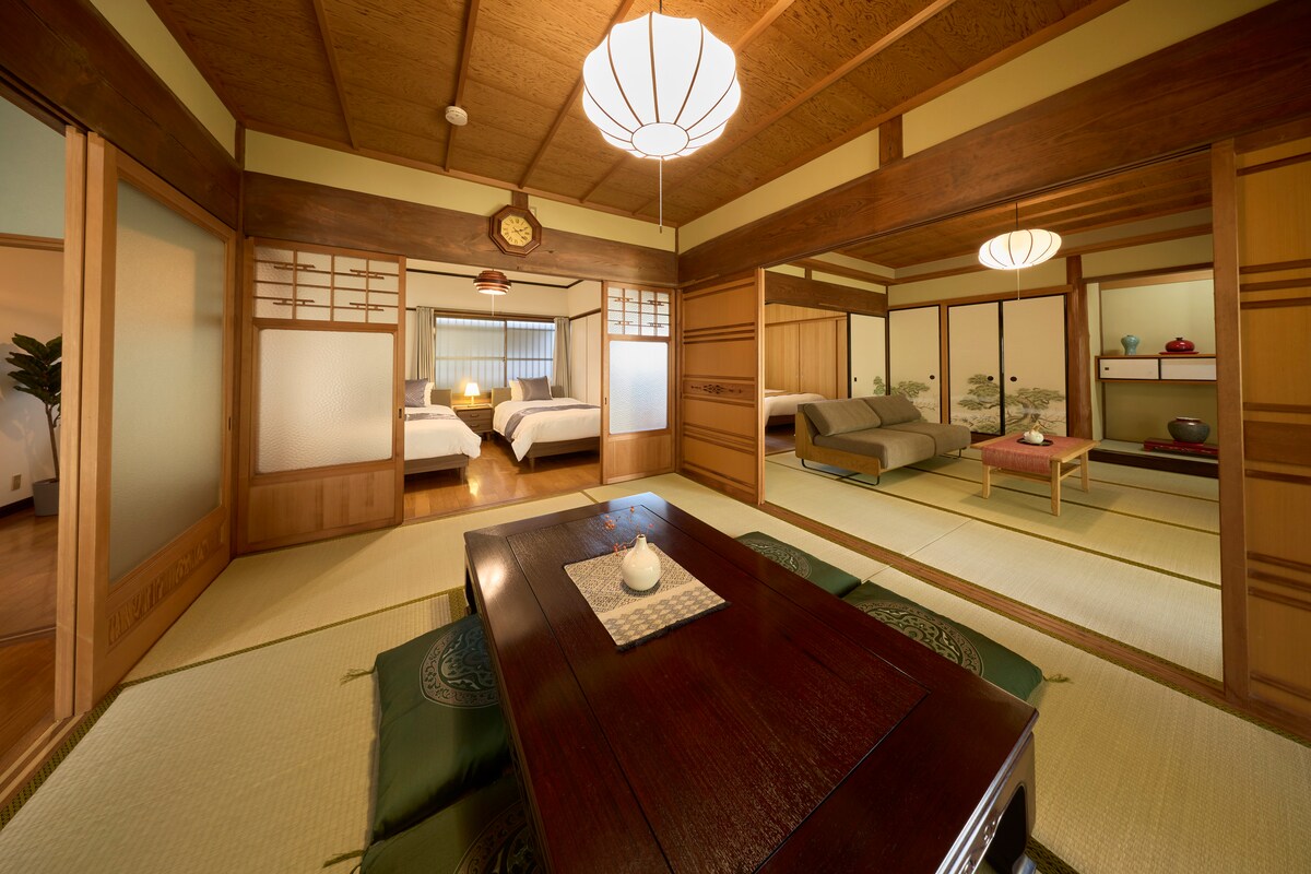 [Jardín japonés] 3 minutos de la estación | Casa retro de 100 m² con tatami | Hasta 11 personas | 6 camas | Aparcamiento gratuito | 30 minutos de Namba