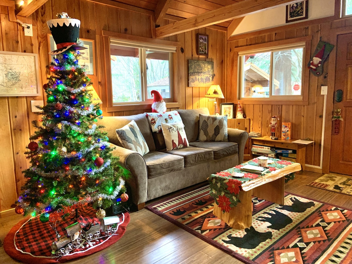 Cabaña con forma de A con bañera de hidromasaje en 5 acres