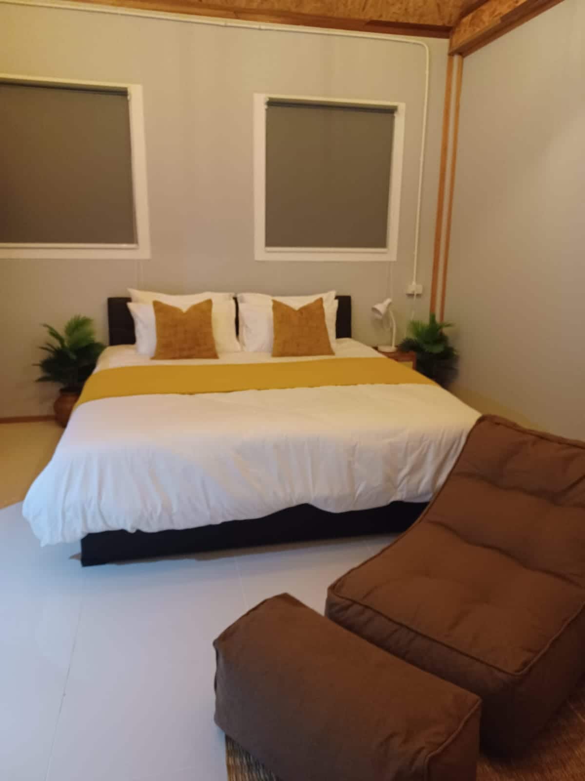 Nuestro bungalow funky y asequible está rodeado de naturaleza, entre jardines tropicales justo al lado del mar. Disfruta de la refrescante brisa marina y de las impresionantes vistas al mar al atardecer a través de los frondosos manglares. Observa a los lugareños en su día a día y siéntete parte de la comunidad. Nuestros huéspedes también disfrutarán de acceso gratuito a la piscina y al gimnasio de pesas en el resort, a solo un par de cientos de metros a lo largo de la costa.