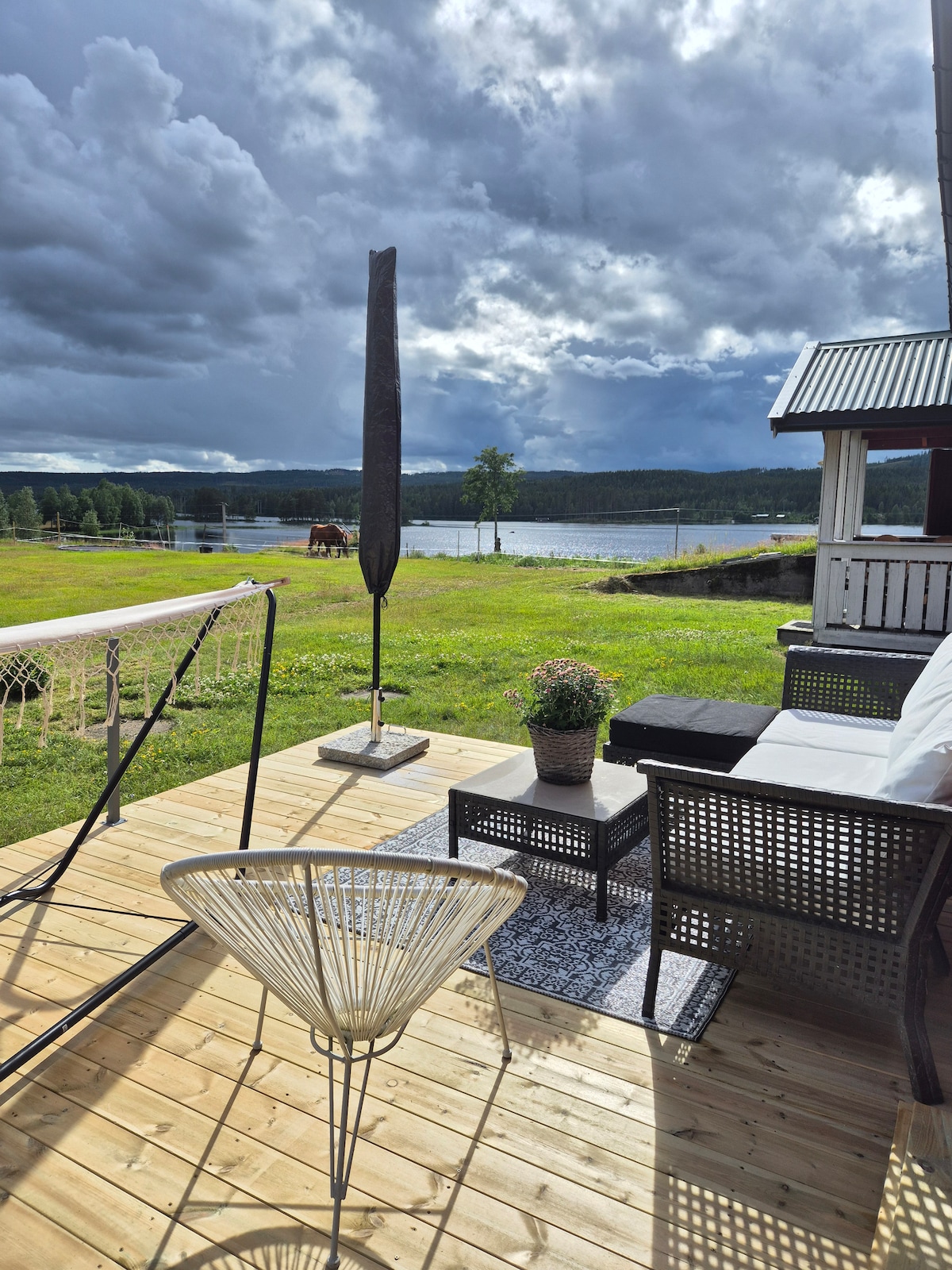Moderne gjestehus, utsikt til innsjø