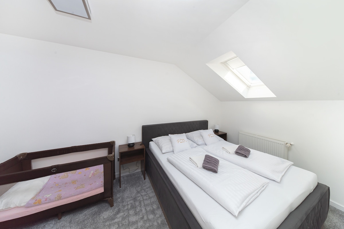 90 m² | Terraza de 35 m² | Hermosas vistas a la presa | 8 huéspedes 125 m2 | 6+2 camas Disfruta de la comodidad, el estilo y el bienestar en un solo lugar. Bienvenido a los Modern Wellness Apartments, un elegante refugio junto al precioso embalse de Domaša. Cada apartamento combina diseño, tecnología y relajación, ideal para parejas, familias o grupos que buscan una escapada tranquila rodeada de naturaleza.