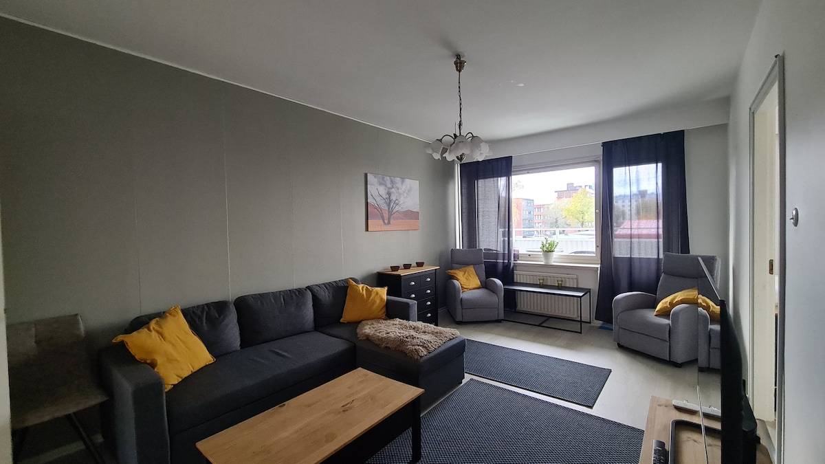 Amplio y luminoso apartamento de 60 m2 junto al parque acuático Sapokka En 2016, piso renovado con una ubicación tranquila, solo A 10 minutos a pie de la sala de natación/sauna. y centro de la ciudad. Balcón, aparcamiento gratuito. A 5 minutos. a pie desde la parada de autobús, a 15 minutos de la estación de tren.