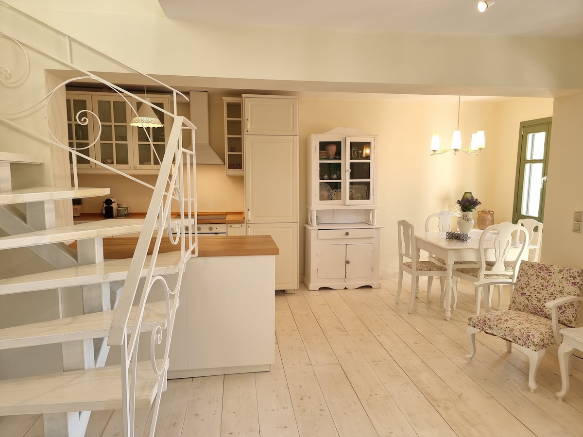 Recientemente renovada con cuidado, Villa Aiolia es una villa de piedra del siglo XVIII, que se encuentra en una posición elevada, rodeada de un paisaje natural tranquilo. El pueblo en sí es pequeño, histórico y está bien cuidado, por lo que es imprescindible dar un paseo para explorarlo. La casa es un excelente punto de partida para explorar y un lugar increíble al que volver. A 6 minutos de la playa de Petani (fácilmente equiparable a la famosa playa de Myrtos) puedes encontrar numerosos restaurantes y admirar impresionantes puestas de sol. El centro de la ciudad está a 16 minutos en coche.