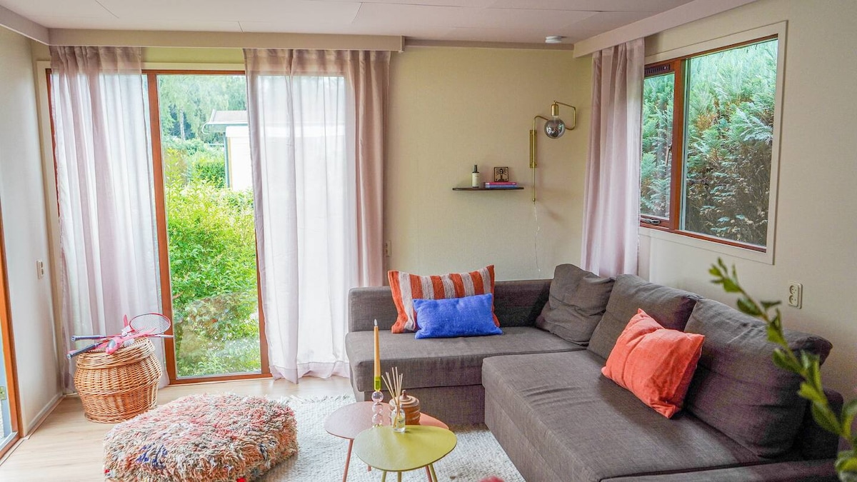 Alójate en esta espaciosa casa de madera finlandesa, situada en una zona boscosa en un parque tranquilo. La casa tiene 2 dormitorios, un amplio salón con cocina y baño modernos a estrenar. La casa se encuentra en una parcela de 360 m2 y tiene un amplio jardín vallado abierto con mucha privacidad. El parque está directamente contra el Veluwe, donde se puede caminar sin parar. A pocos kilómetros se encuentra Putten, un pequeño pueblo con tiendas y restaurantes.