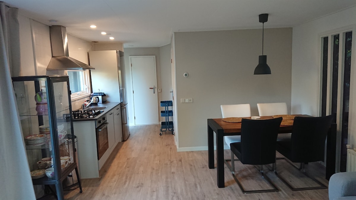 Es un acogedor chalet cerca del bosque de la hermosa Veluwe. El chalet tiene un jardín verde con una terraza cubierta. Es una base maravillosa para caminar y andar en bicicleta. En el vecindario hay lugares agradables como Elburg, Nijkerk, Barneveld y Harderwijk. Las grandes ciudades como Apeldoorn y Amersfoort están a solo 30 minutos de distancia y Ámsterdam está a menos de una hora. El chalet se encuentra en un parque tranquilo y a pocos pasos del bosque.