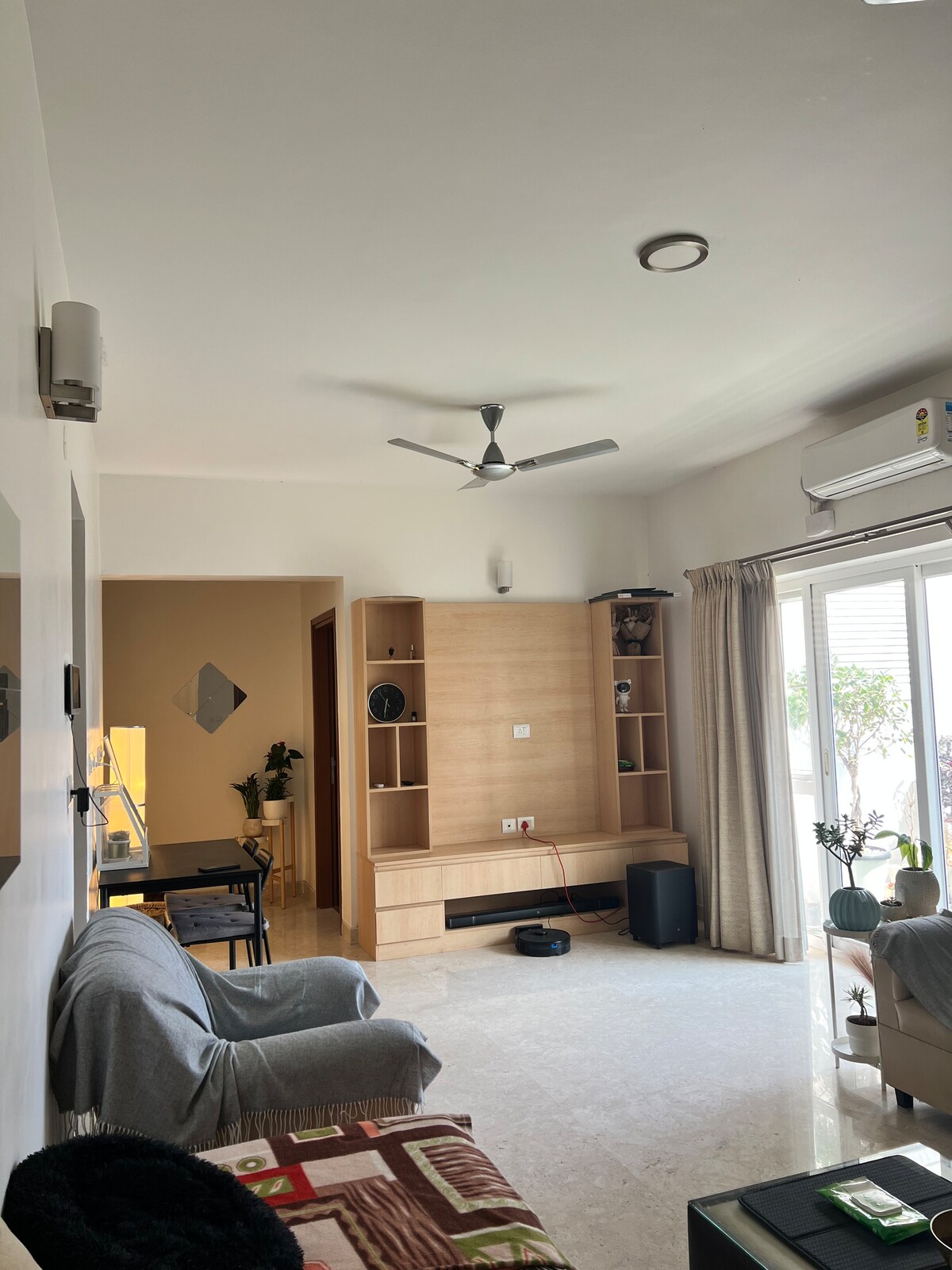 A thoughtfully designed 2-BHK apartment is a peaceful urban retreat, perfect for families looking for comfort, space and a relaxing stay. Surrounded by lush indoor plants, the home feels fresh, airy, and soothing—ideal for both adults and children. The apartment features two comfortable bedrooms, a spacious living area, and a fully equipped kitchen, making it easy for families to settle in and feel at home. Large windows bring in natural light, while greenery brings in nature inspired atmosphere