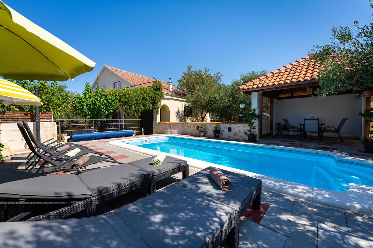 Esta hermosa villa con piscina climatizada, bañera de hidromasaje y sauna se encuentra en un paisaje remoto y aislado con una vista impresionante del valle. Piscina climatizada de abril a noviembre ¡Un lugar ideal para relajarse y un punto de partida para explorar la región y Croacia! Distancia a la ciudad Zadar está a 28 km (aeropuerto a 20 km) de distancia. Šibenik está a 50 km de distancia. Split está a 125 km (aeropuerto a 99 km) de distancia. Distancia a la atracción Lagos de Plitvice a 125 km. Krka a 45 km de distancia Kornati a 30 km de distancia