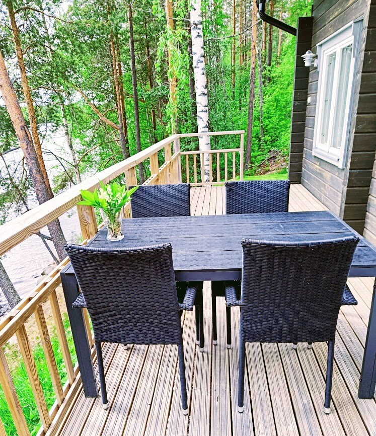 Este oasis de relajación es un magnífico y único conjunto arquitectónico situado en la punta de un promontorio, donde hay espacio para respirar y relajarse. La cabaña está situada junto a las aguas cristalinas del lago Suvasvesi. Junto a la cabaña principal hay un dormitorio de verano con unas vistas panorámicas impresionantes del lago. ¡Las grandes ventanas traen la naturaleza al interior en todas partes! Una enorme terraza conecta la cabaña principal, el dormitorio y el muelle con sus balsas en la orilla, y el lago lo rodea todo. Es bueno estar aquí :).