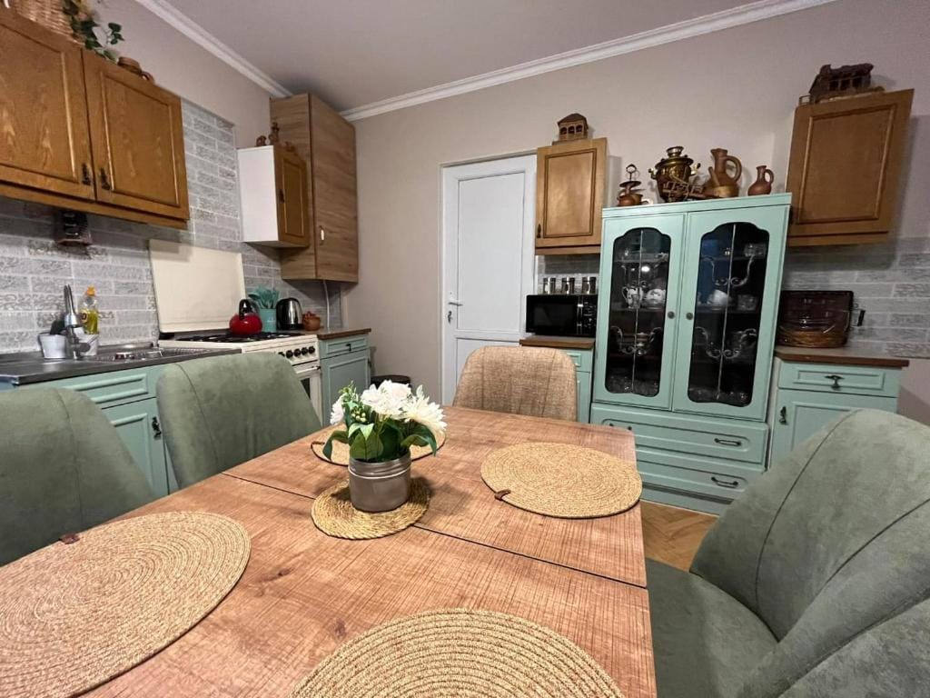Acogedor apartamento en el centro de la ciudad de Borjomi, cerca del Puente de la Belleza. Con 2 dormitorios (2 habitaciones dobles). Gran salón comedor con cocina. Equipado con todas las cosas necesarias. Casa de nuevo diseño, con equipamiento nuevo. Todo está pensado para que tengas unas vacaciones inolvidables.