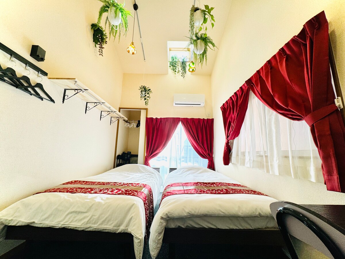 2Rooms&ロフト付きのお部屋で1階にあります。 専用の玄関で、トイレ、バスルーム、キッチン、部屋は全て貸切で専用です。 シングルベッドが2台、ロフトにダブルのマットレスが2つあります。 お部屋を広く使用したい時は、シングルベッドを重ねることが出来ます。 ◼️設備 TV、Wi-Fi、エアコン2台、冷蔵庫、電子レンジ、電気ポット、鍋、各種お皿(調味料はございません)洗濯機、洗濯洗剤、扇風機 ◼️アメニティー タオル、バスタオル、シャンプー、コンディショナー、ボディーソープ、ヘアードライヤー、歯ブラシ、歯磨き粉、スリッパ ◼️注意事項 ロフトの天井は低く、ハシゴの昇り降りが急ですので、高齢の方や小さなお子様には不向きです。 最大5人までご利用可能ですが、荷物を広げるスペースが狭いのでご了承下さい。 ◼️近くのコンビニ、スーパー コンビニ(セブンイレブン、ローソン、ファミリーマート)徒歩2分 ディスカウントストアMrMaxまで徒歩3分 スーパーマーケット(サニー、マックスバリュー)まで徒歩3分 同じ建物にも部屋がありますので、人数が多い場合はご連絡下さい。