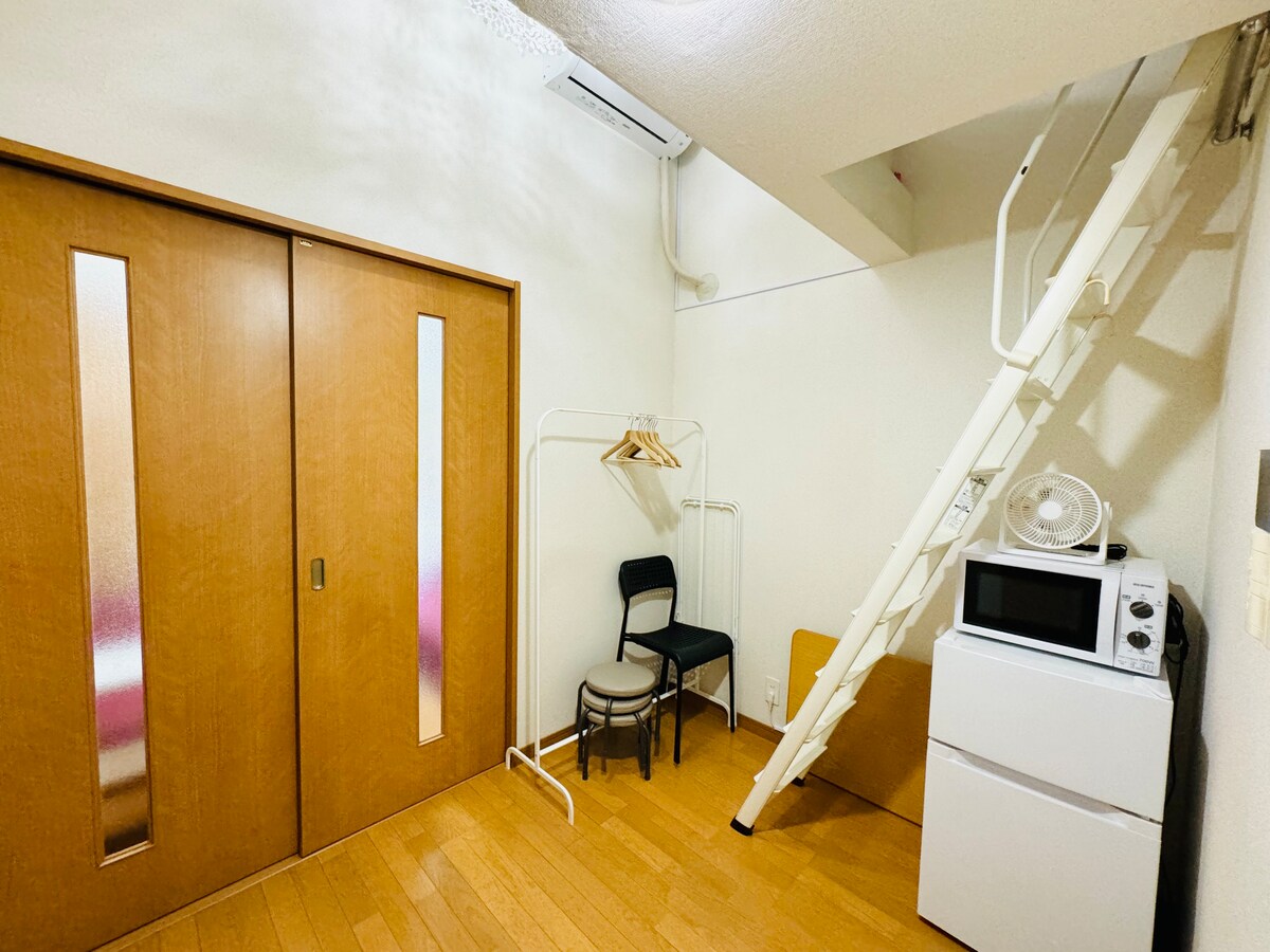Este es un apartamento privado de 1 habitación con un loft ubicado en el segundo piso. (Ten en cuenta que no hay ascensor). 【Estacionamiento gratuito】 La reservación es obligatoria con anticipación. 【Bicicletas gratuitas】 Hay 8 bicicletas disponibles para su uso. No es necesario reservar, puedes usarlos en cualquier momento.
